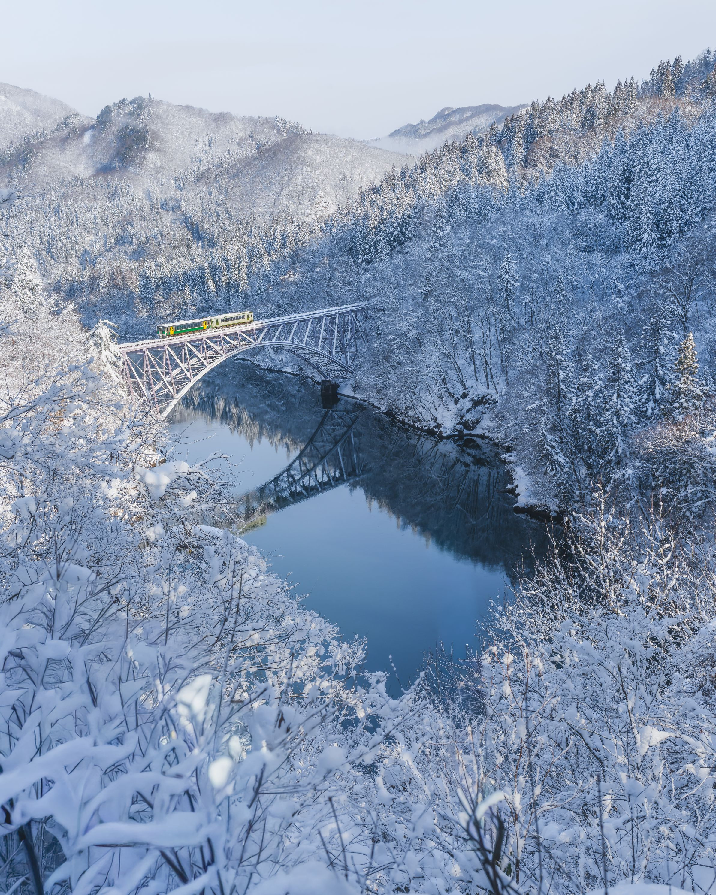 📍 只見線(三島町) / 福島 Date: 13th / January / 2026 「雪鏡のアーチ」 昨年から何度も通い撮影できました。 ちょうど第一只見川橋梁の中心まで光が差しました。 Camera :a7r5 Lens :SEL2470GMⅡ