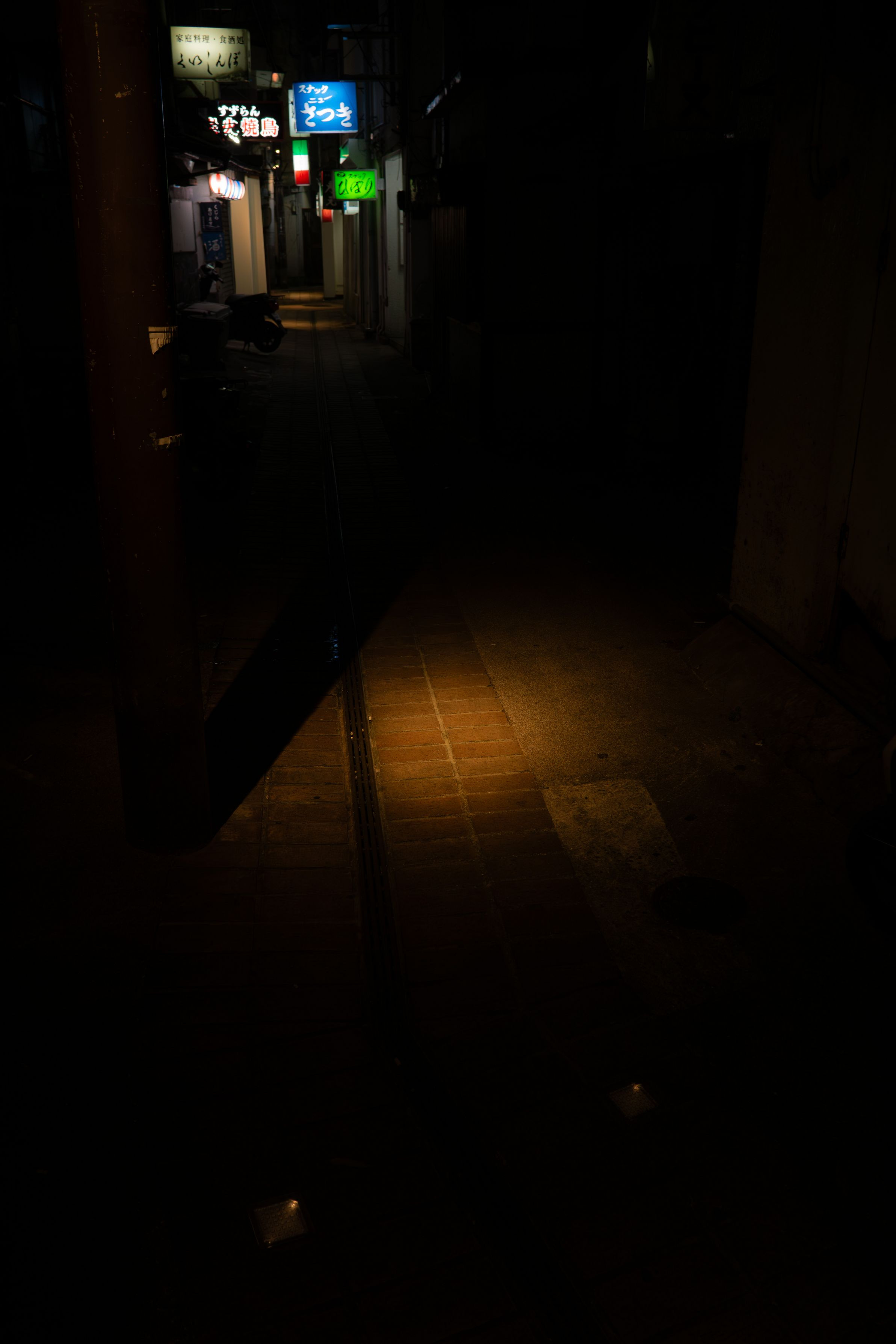 昔ながらの細い路地 一瞬道でないような暗さに戸惑う 奥へ誘うように点々と灯るあかり いくつドラマがあったのだろう と、浸ってしまいそうな路地でした。