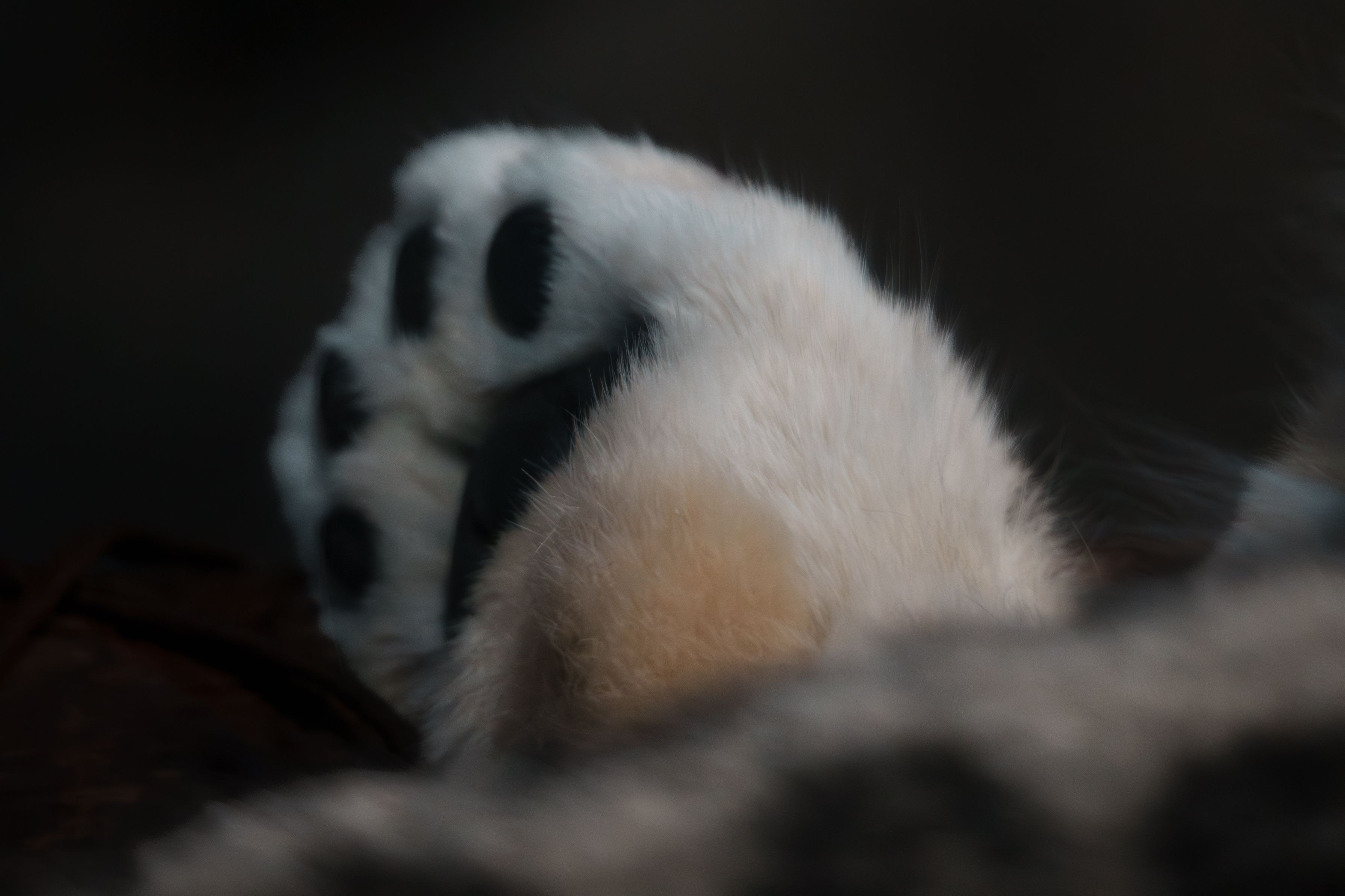 札幌の円山動物園にて。 ユキヒョウの肉球。ふわふわの白い毛に包まれた黒い肉球は、雪山を歩くための特別な贈り物。