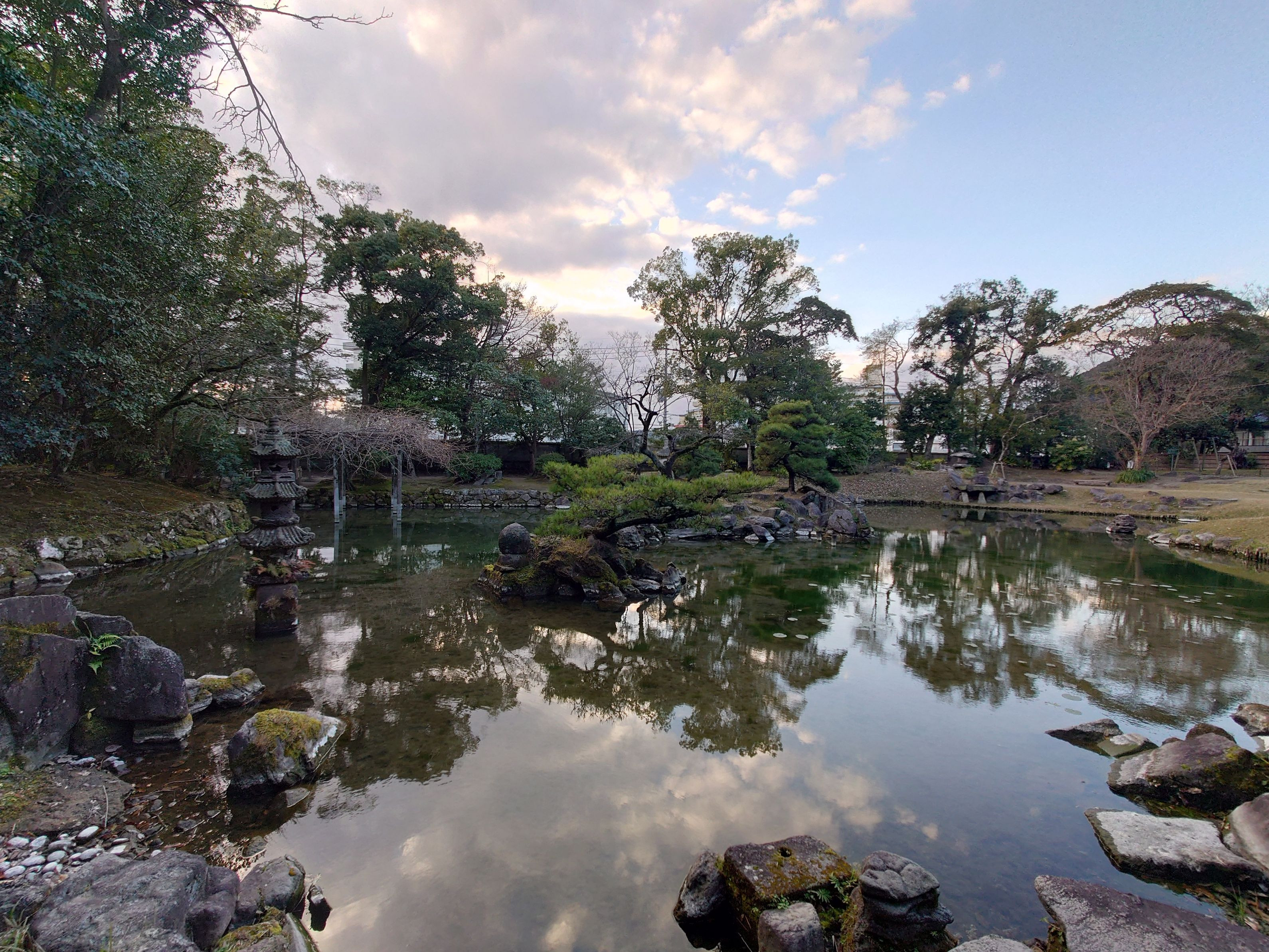 旧島津氏邸庭園の鶴の池です。