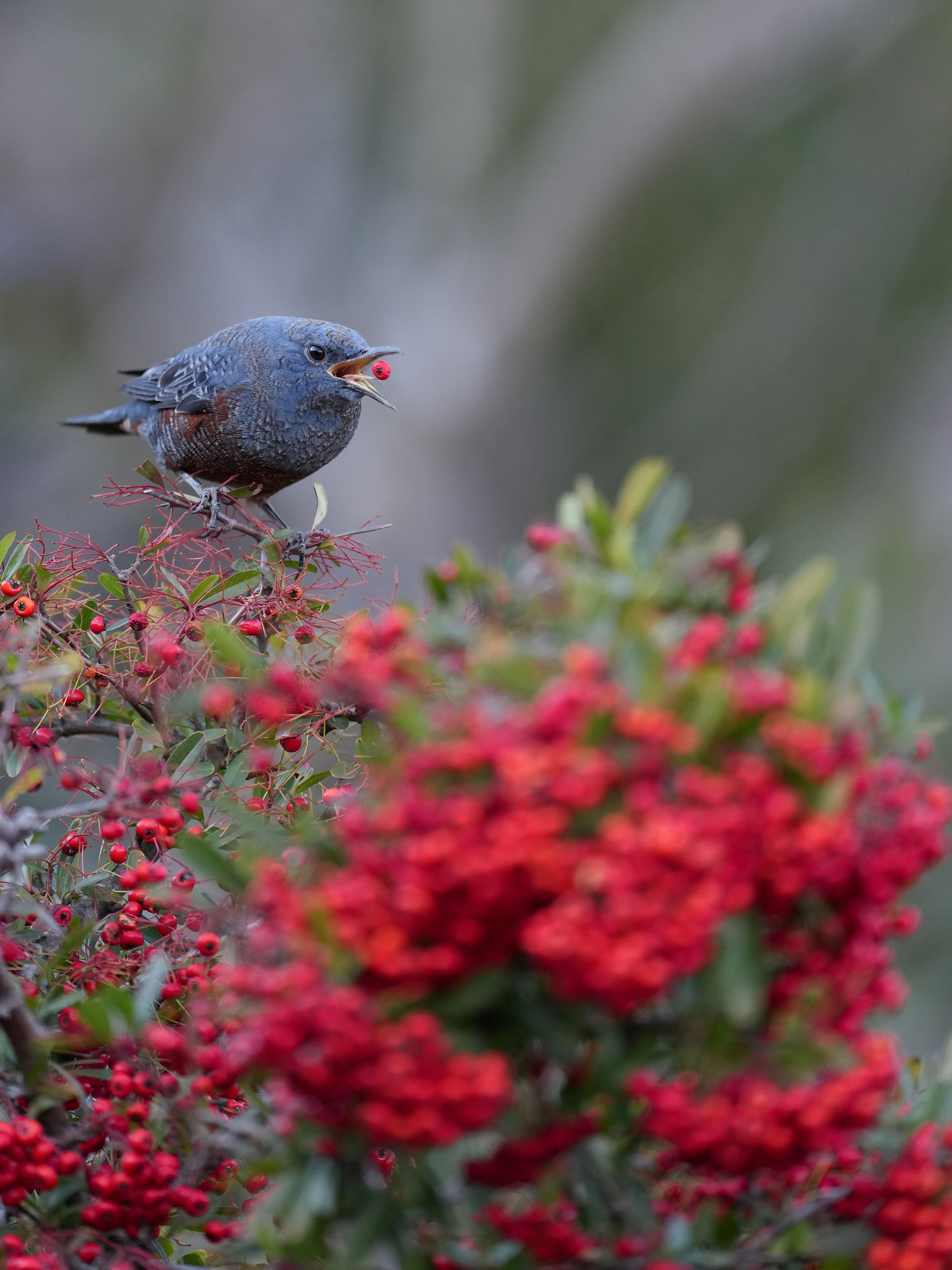 ピラカンサ食堂へイソヒヨドリさんもやって来ました(^^♪ 色んな鳥さんに大人気です✨