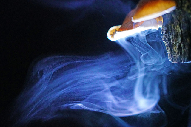 原木椎茸の胞子の舞。
