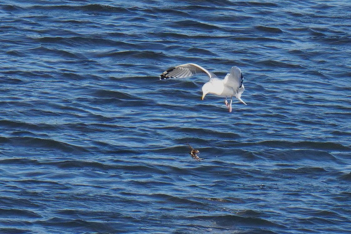 蟹を捕まえ飛びたつ、その後に蟹を落としてしまった、アアー なんてことだ