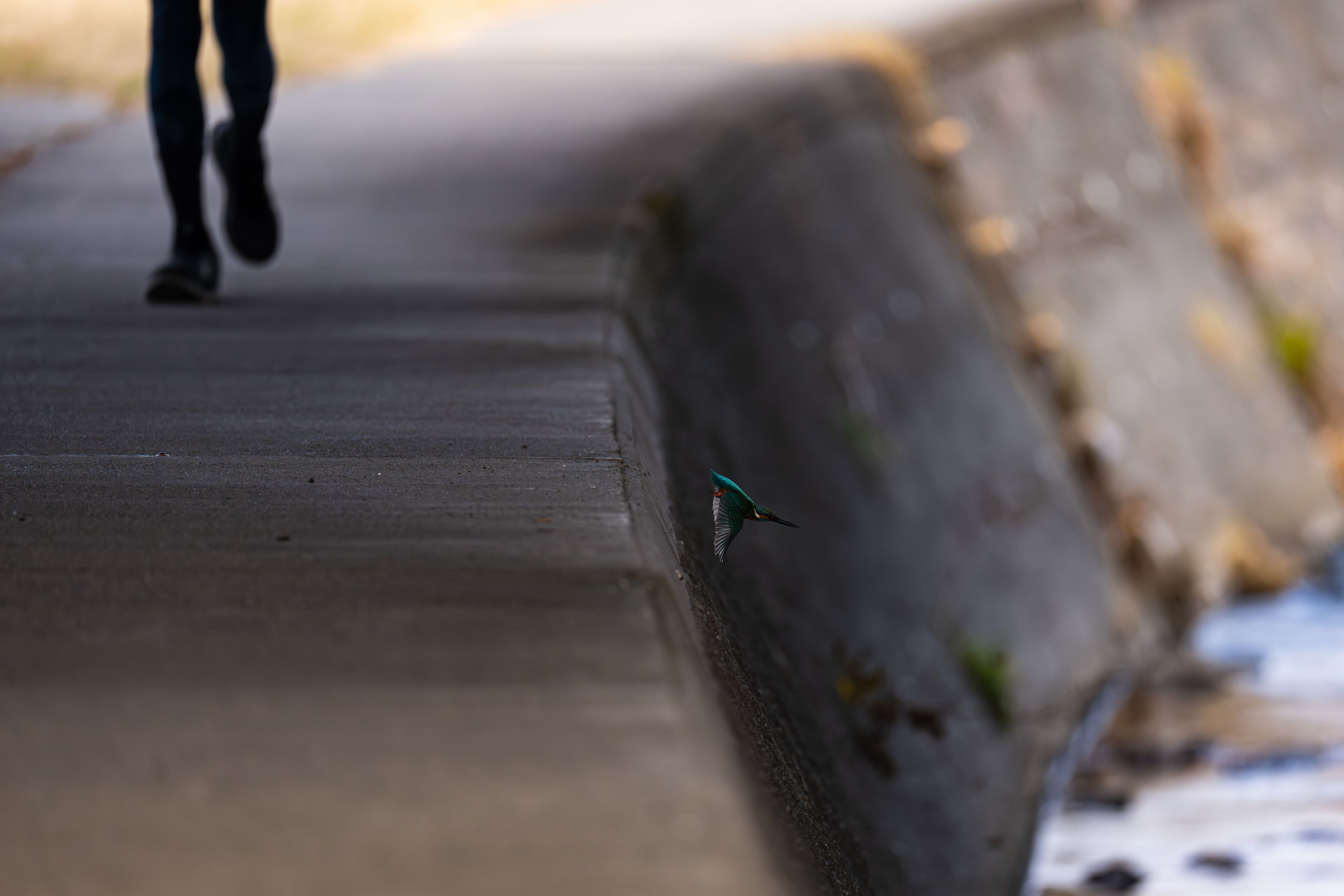散歩やランニングする方の多い川辺での撮影。 人慣れしてるカワセミさんもこの距離に人が近づくと飛んじゃいます
