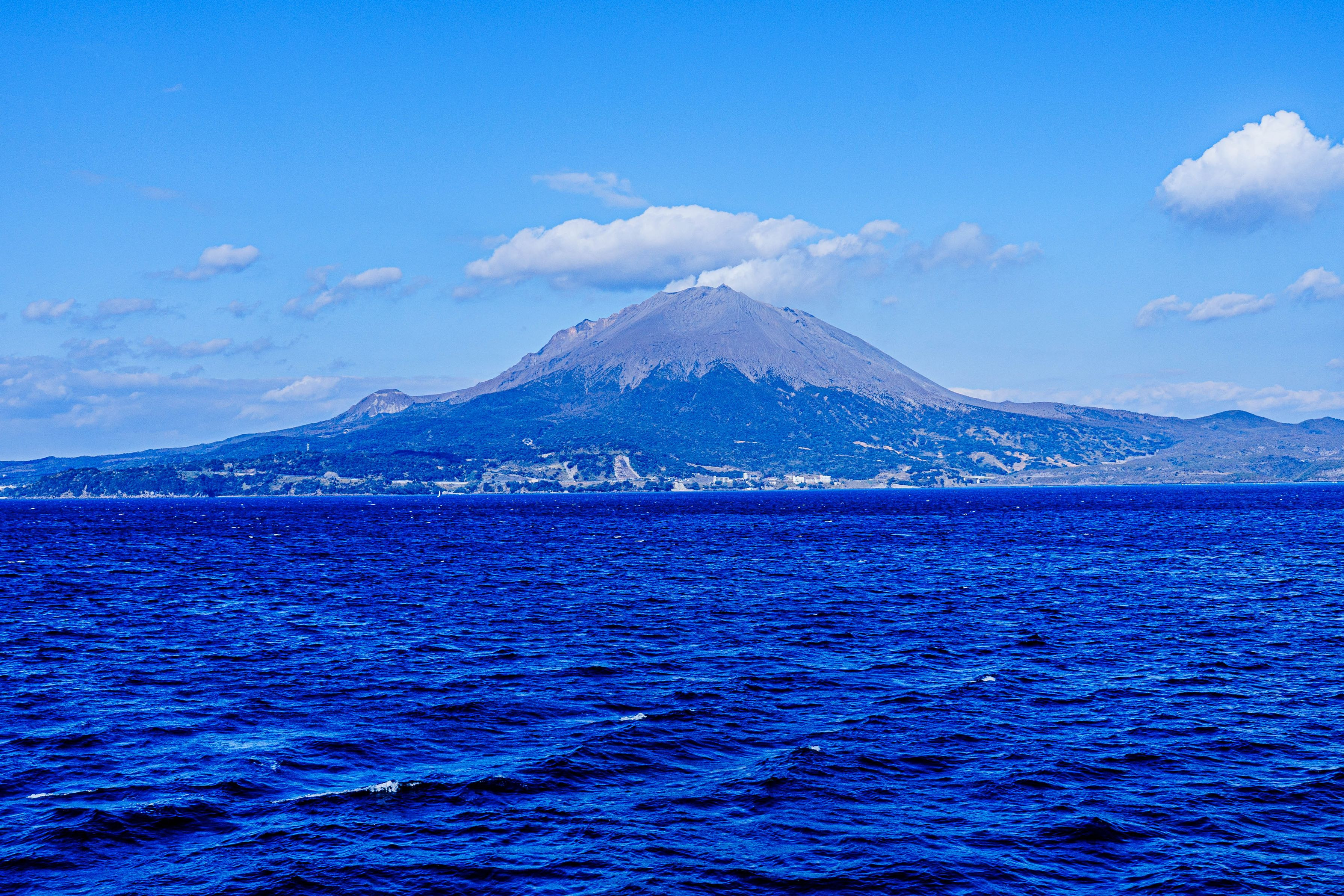 フェリーから眺める雄大な桜島の景色を撮影しました。 桜島は違う角度から見ると「容姿」が変わります。