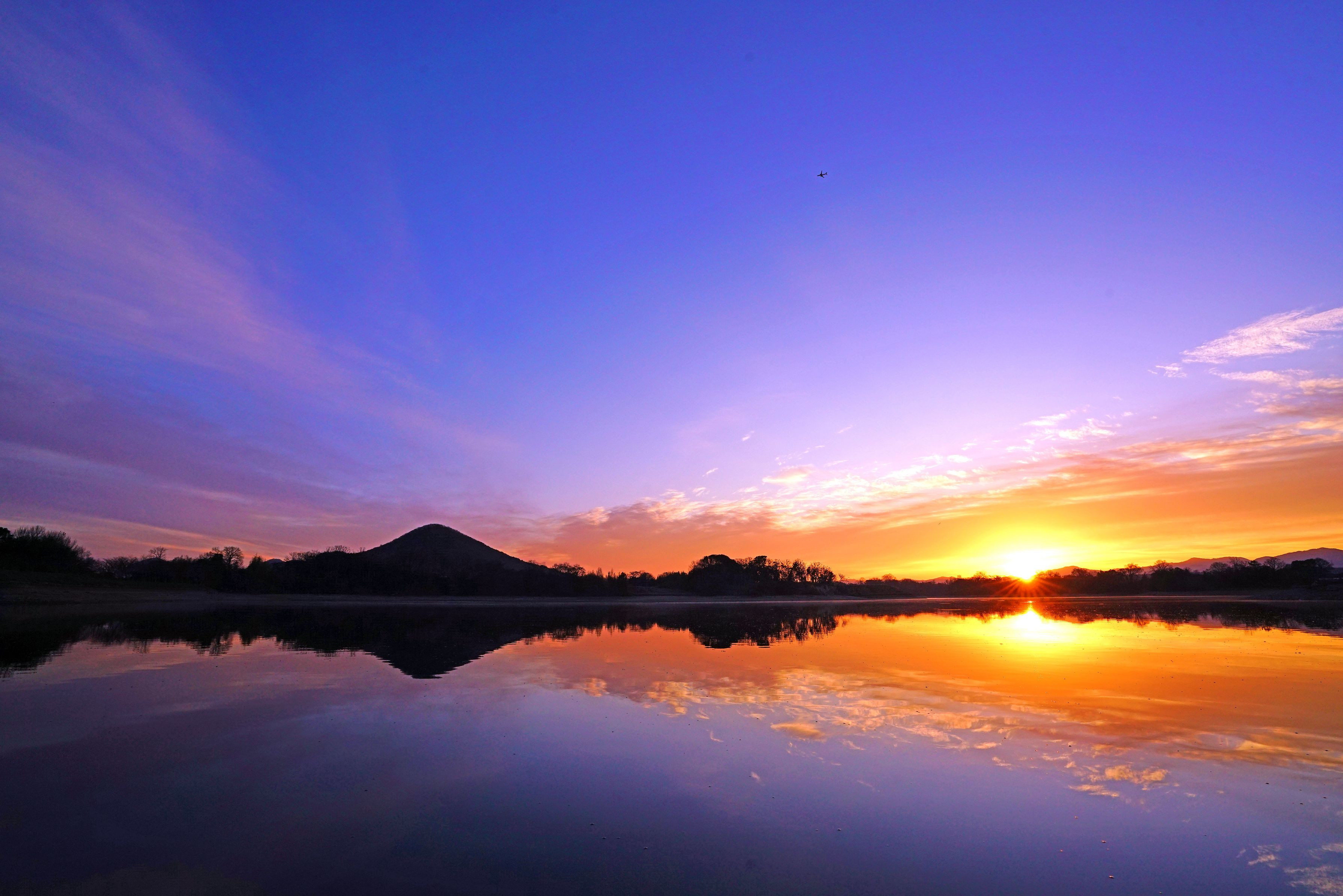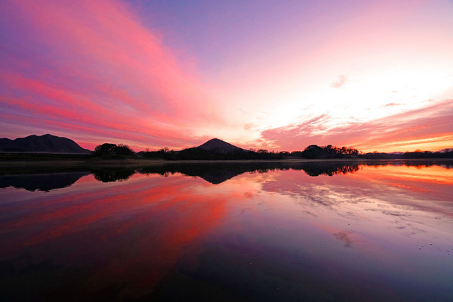 朝焼けのため池