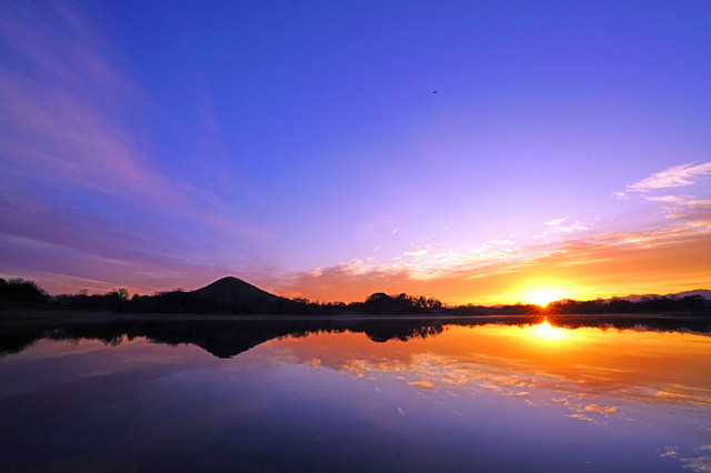 陶富士を映すため池の朝。