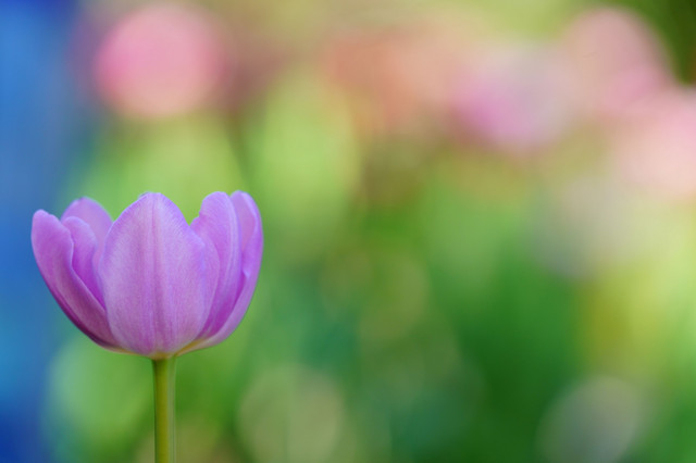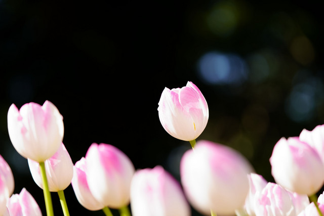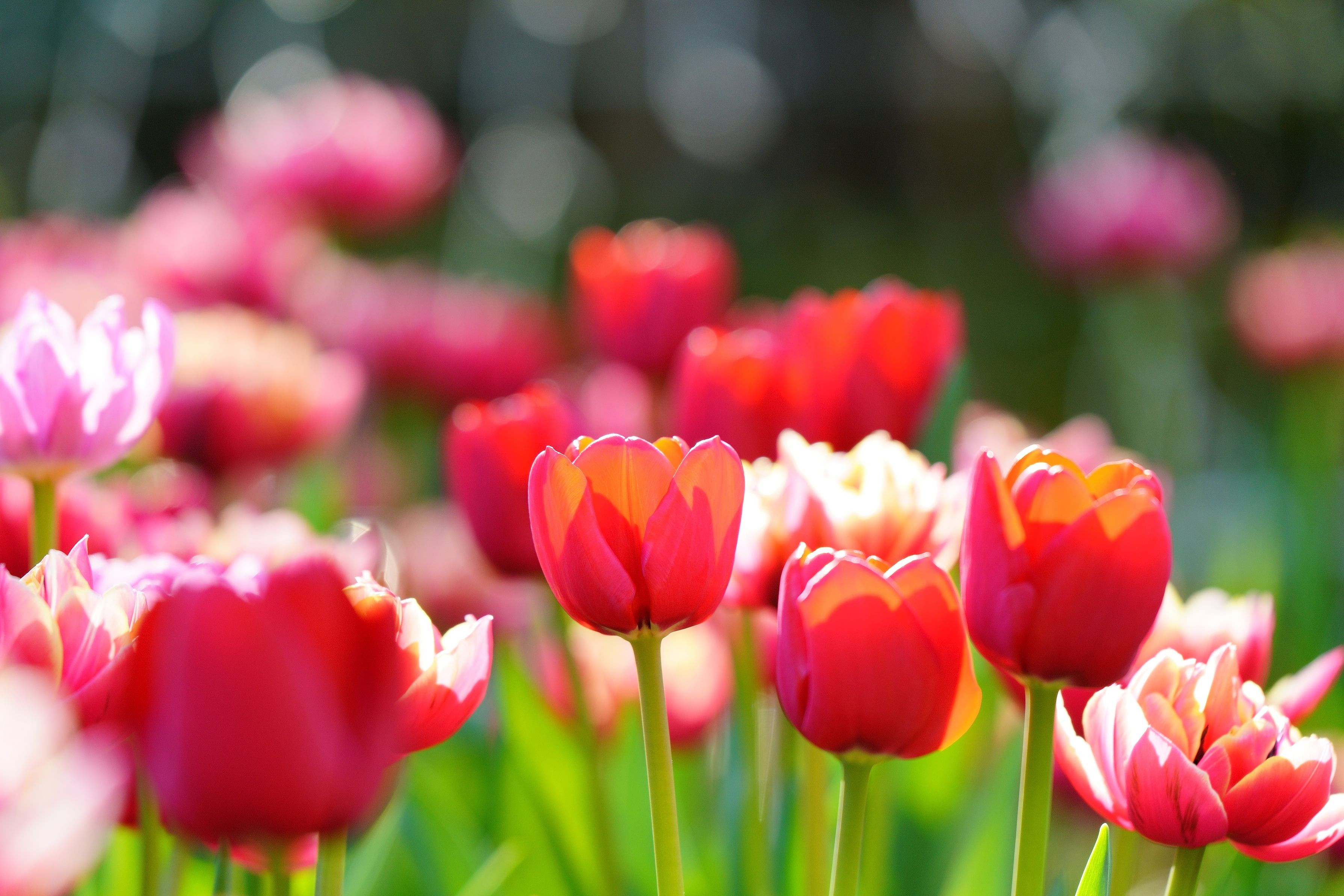 アイスチューリップの花壇は、春が来て輝いていました。