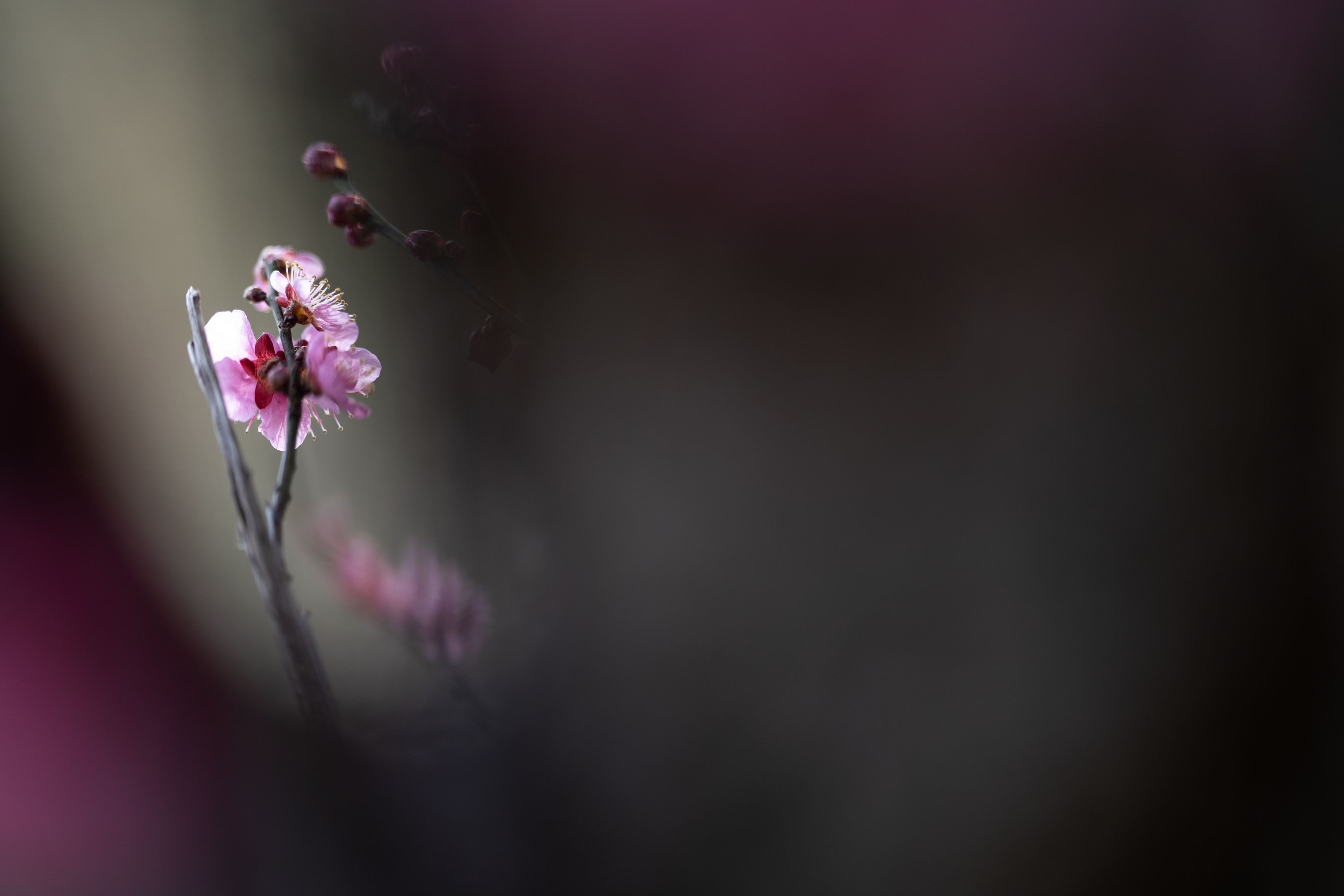 暖かな冬の日、もう紅梅が見頃になっていました、