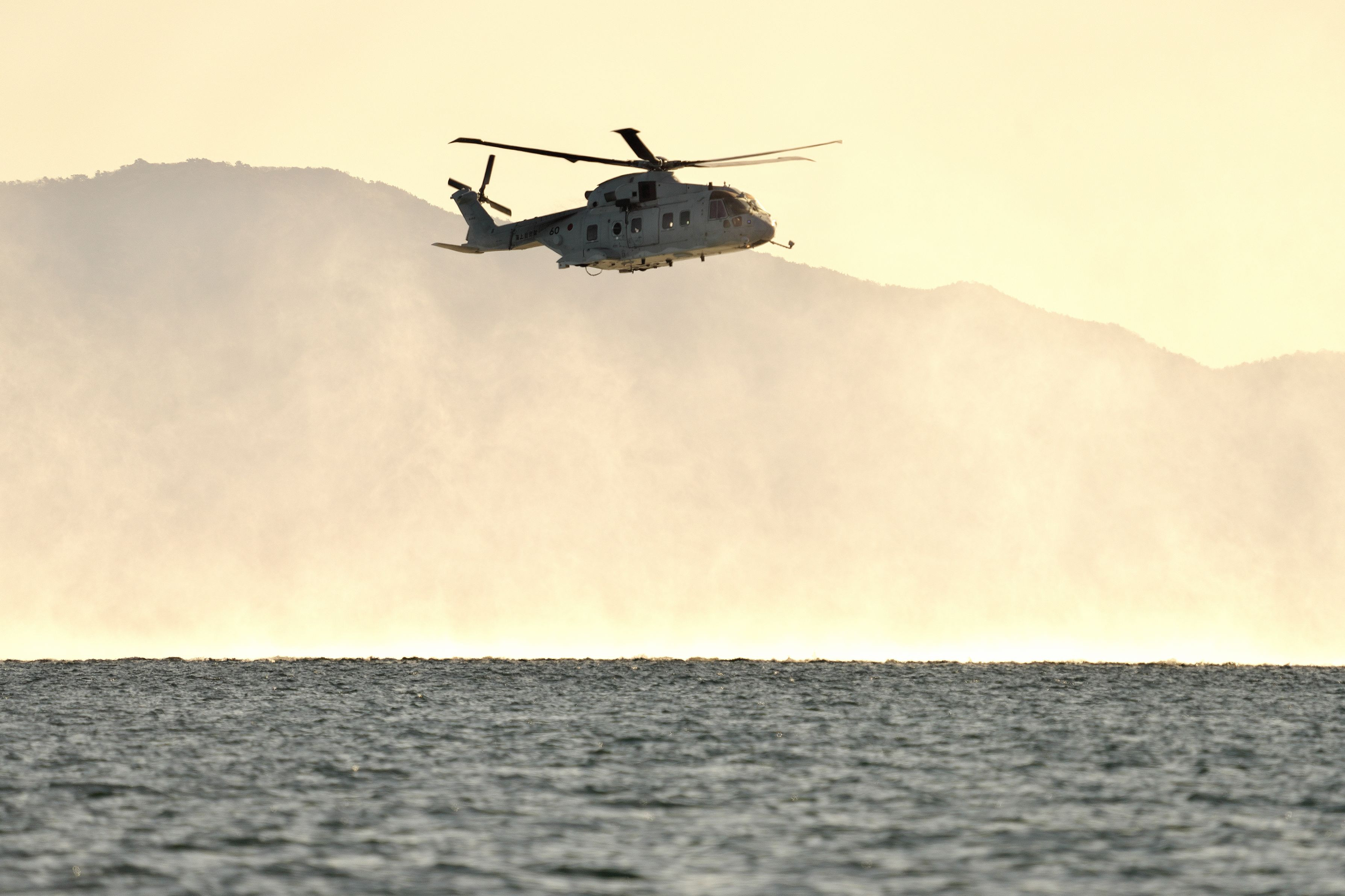 岩国基地沖合でホバリング訓練をする海上自衛隊のヘリコプター。 結構、長い時間ホバリングしていたので撮影チャンスはありました。