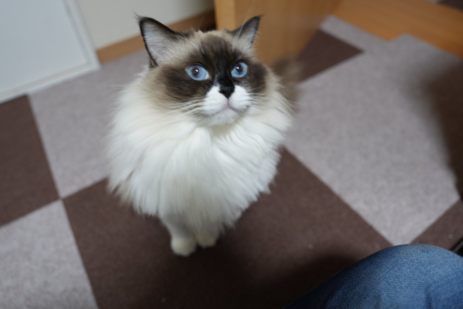 部屋干しの洗濯物の下へ隠れてました。