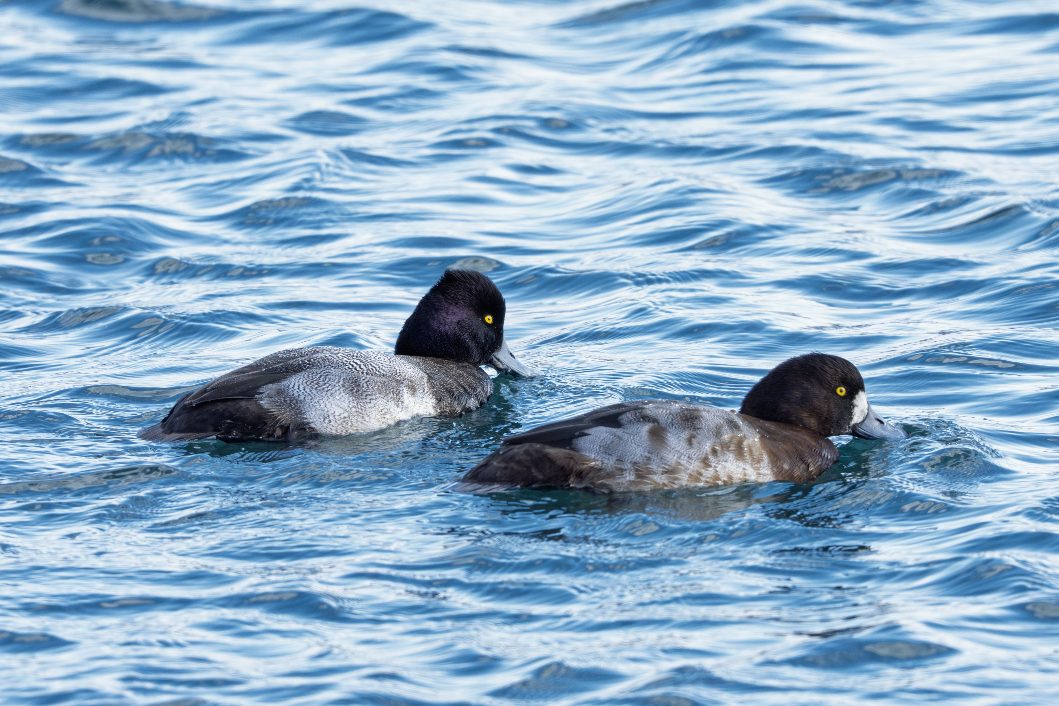 左が#コスズガモ#さん、右が#スズガモ#さん うまく並んでくれたので頭の形の違いがわかると思います。