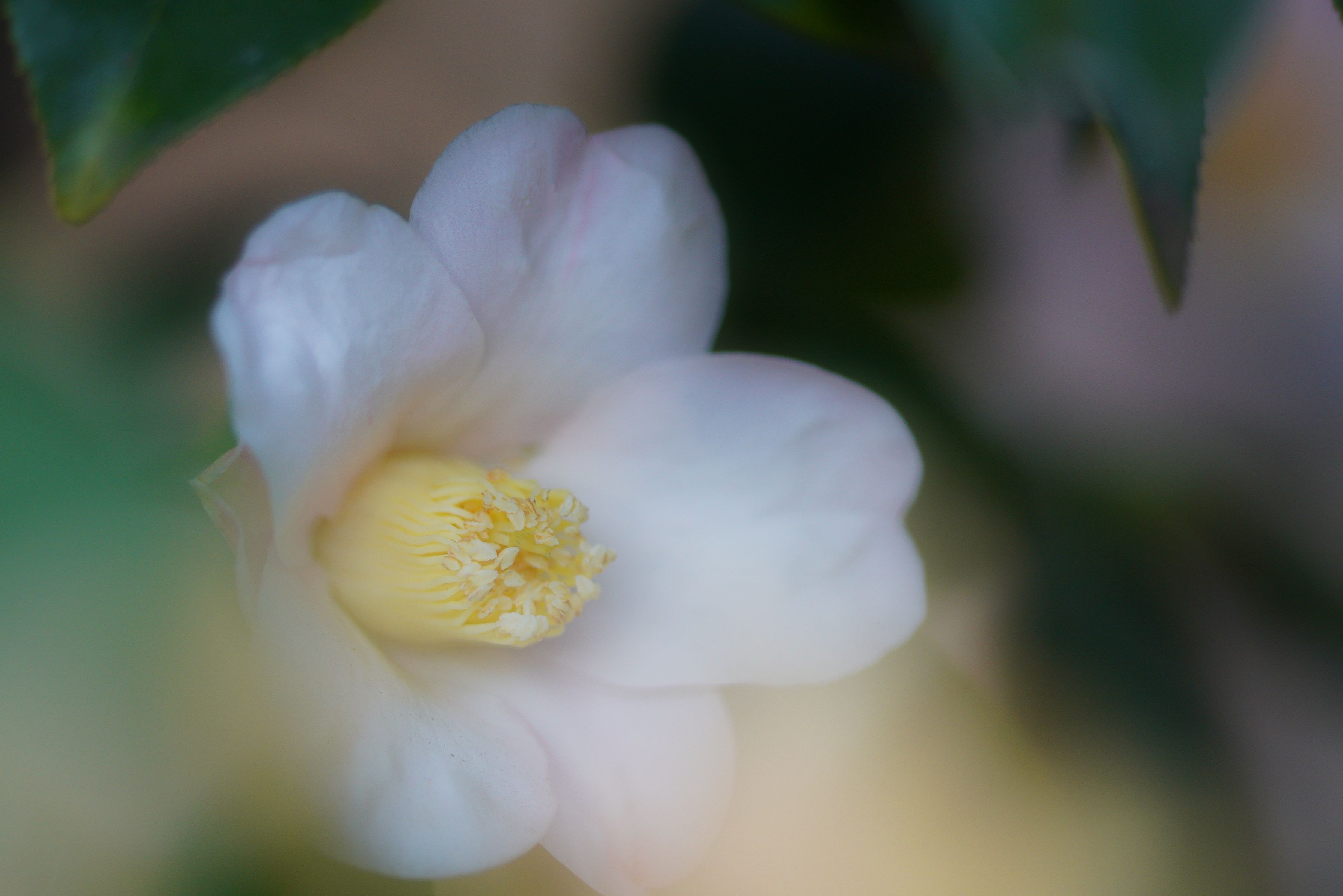 白い椿の花が隠れるように咲いていました。