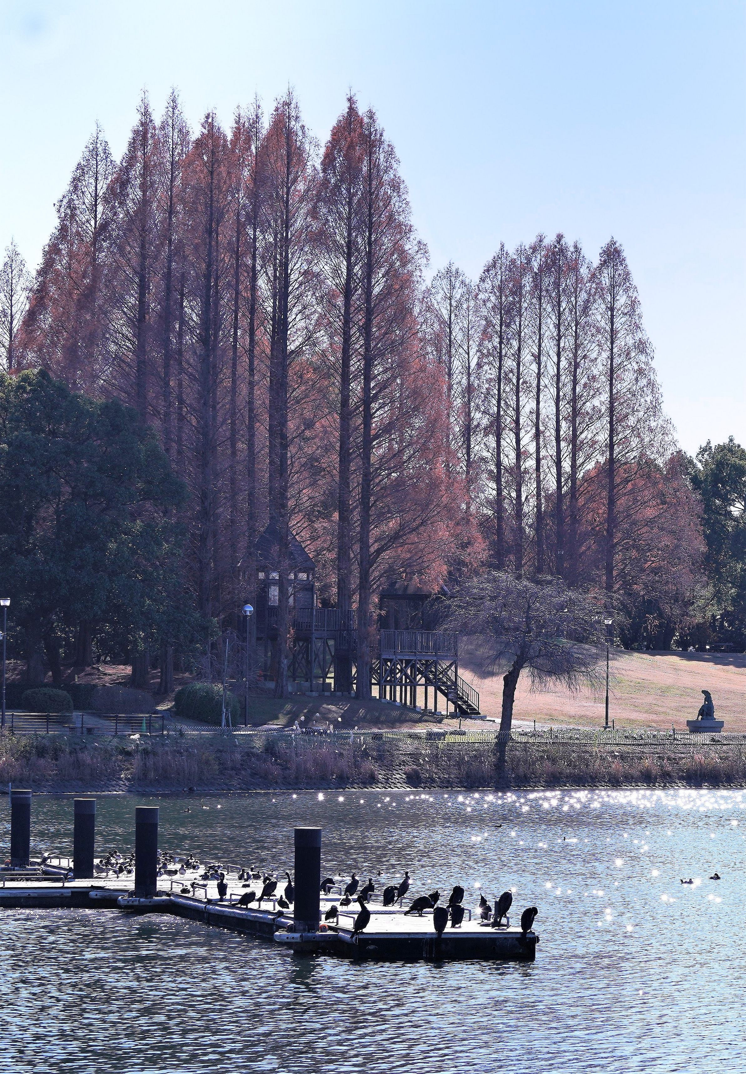 寒中の穏やかな日の公園 カワウさんがのんびり日向ぼっこをしていました。