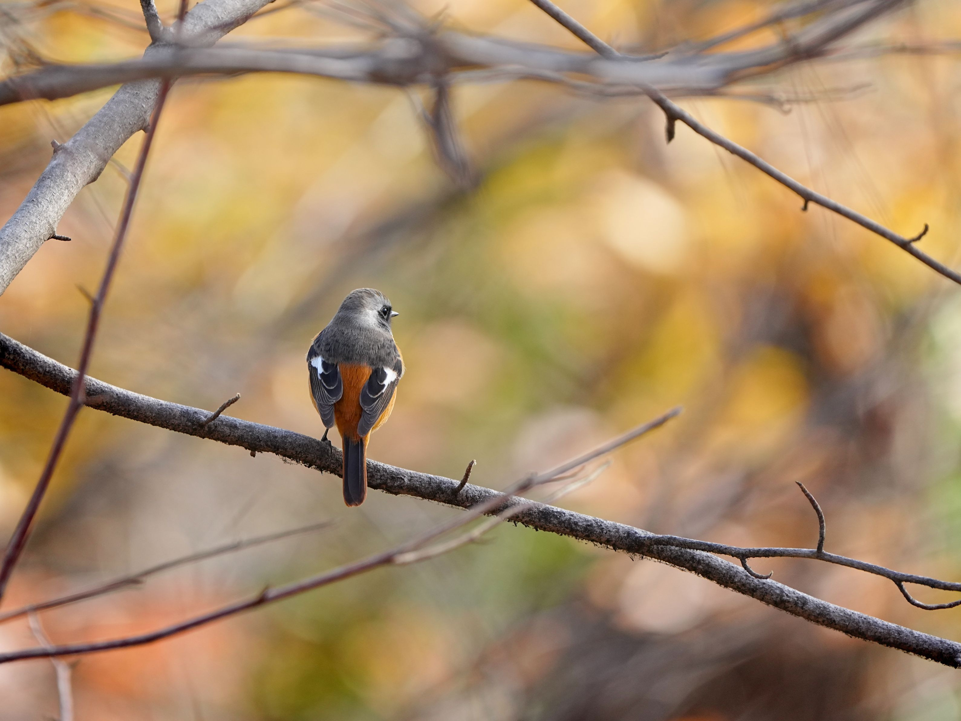 後ろで手を組んでいるように見えてジョウビタキの後ろ姿がお気に入りです