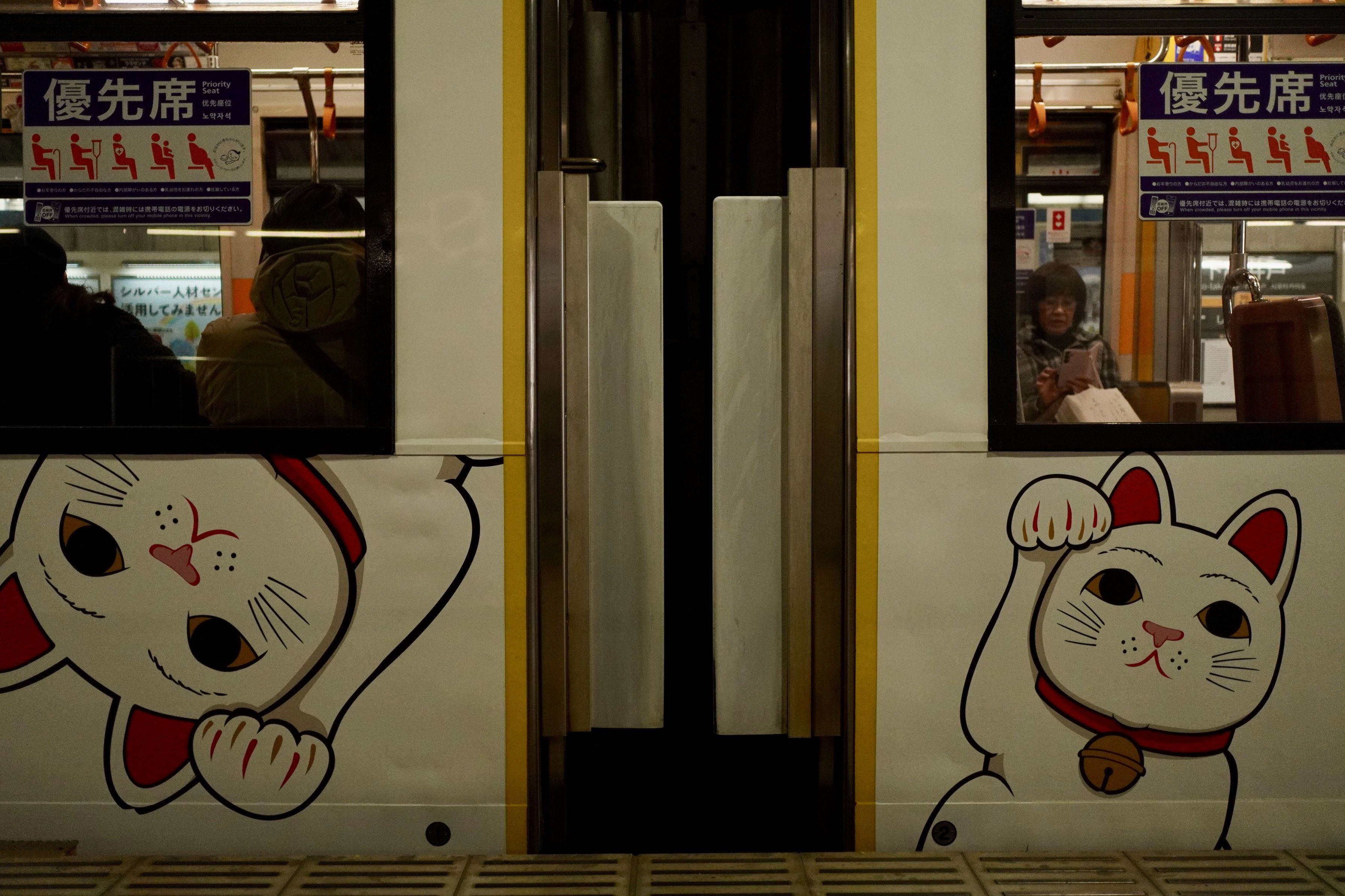福を呼ぶ白い路面電車が走っていました