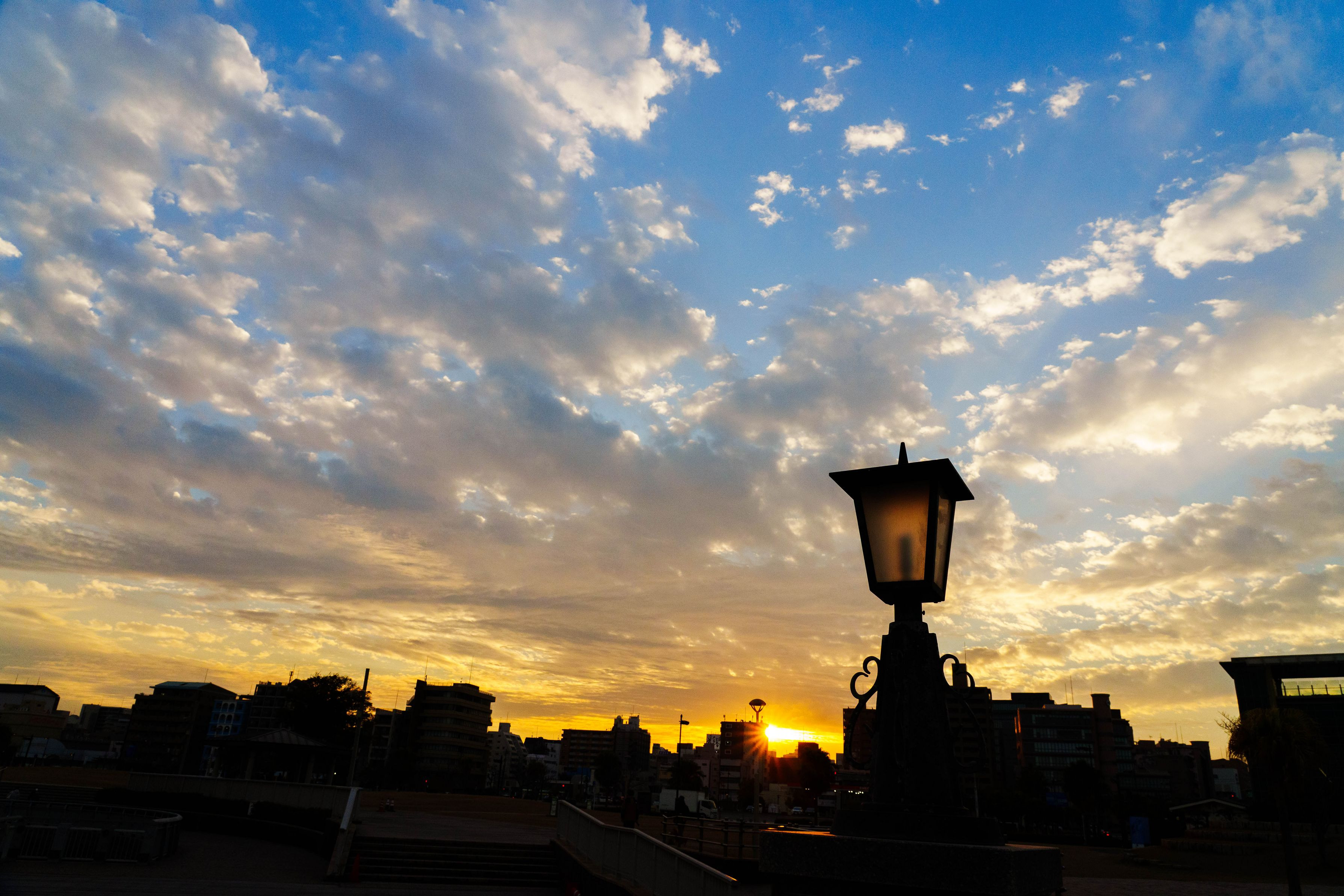 太陽が沈む瞬間に街灯と影の美しさにフォーカスしました。