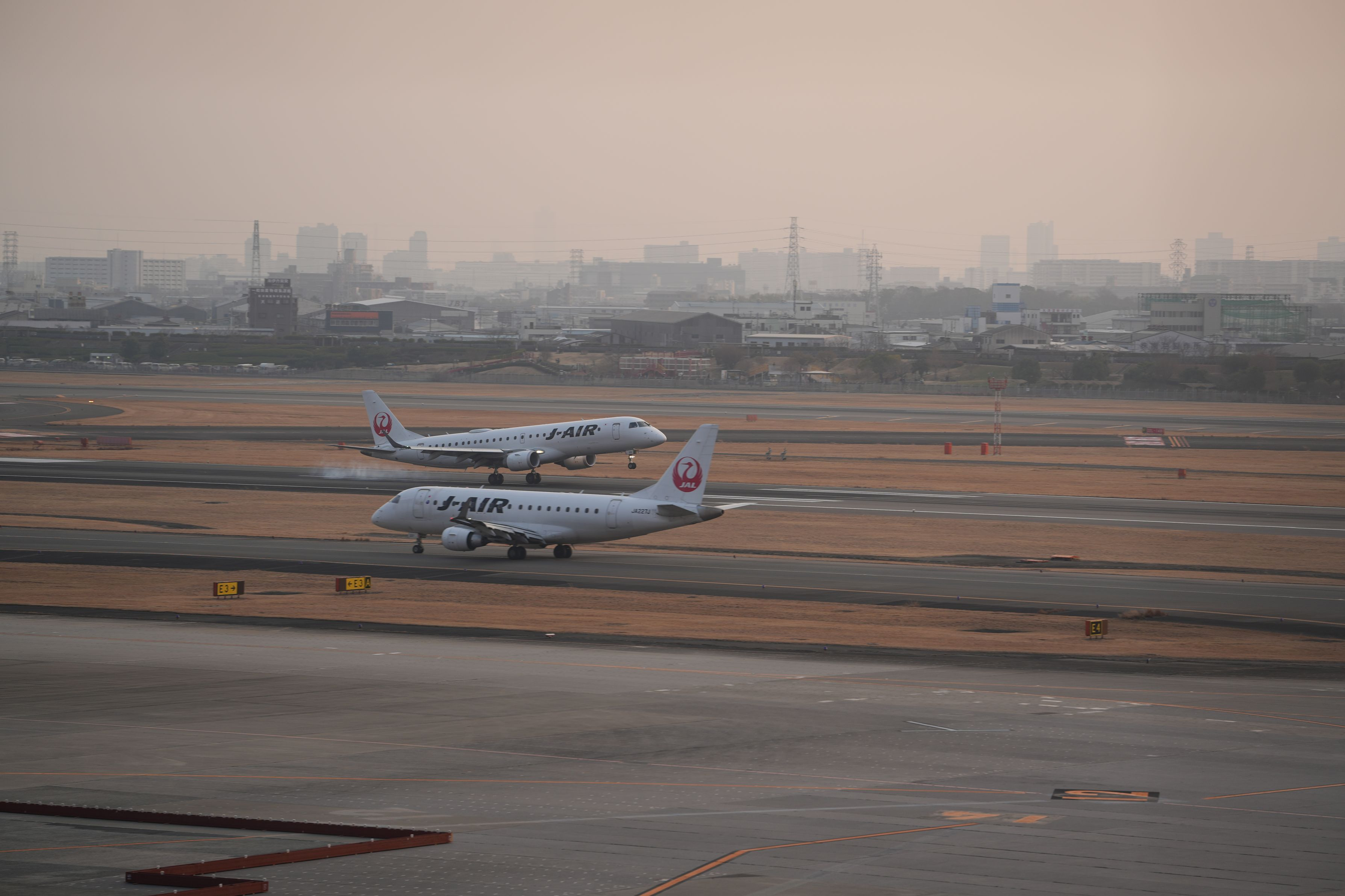 着陸したJALと離陸に向かうJAL