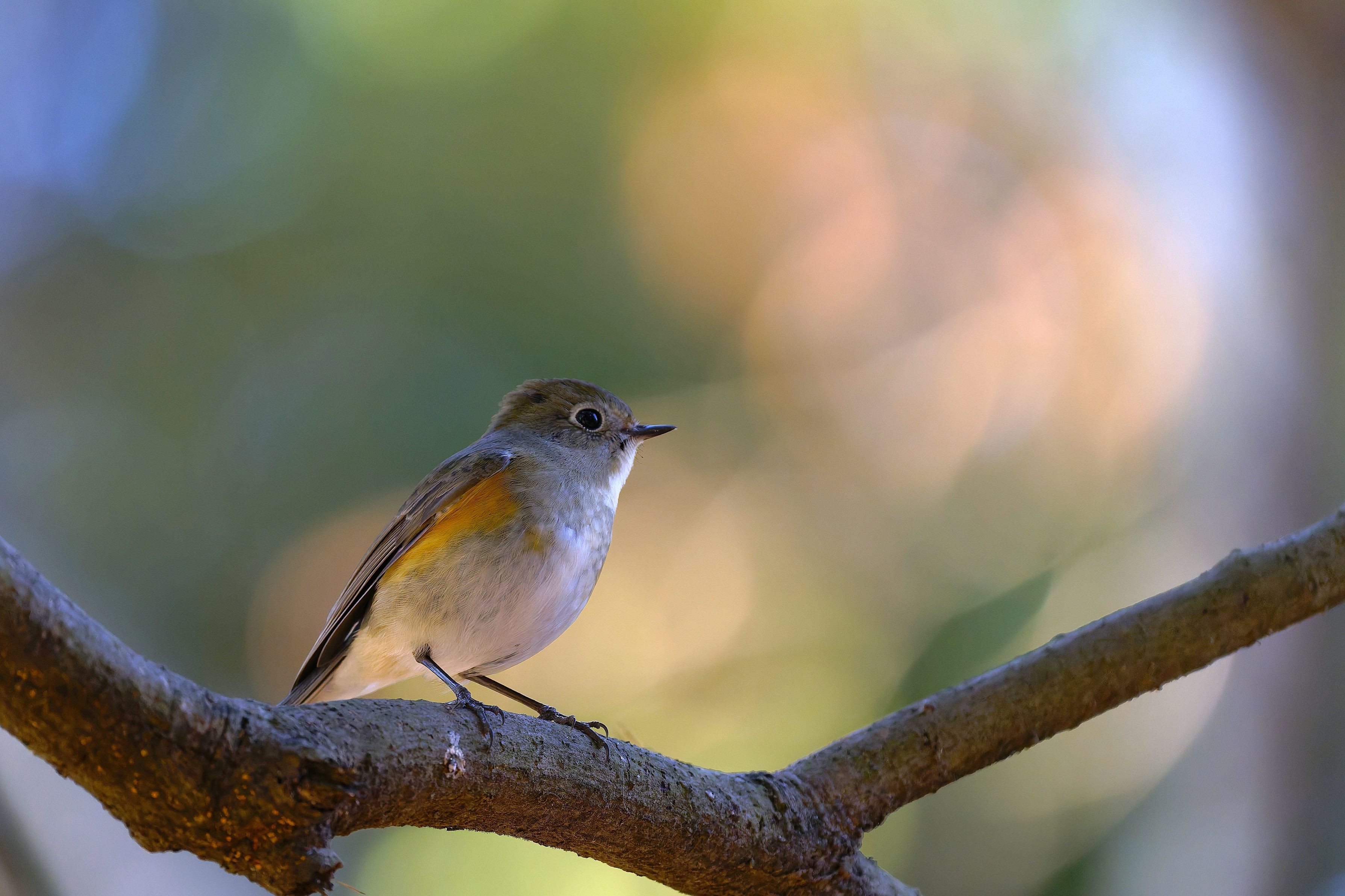 広葉樹の木の真下に立っていたら、 ルリビタキがパラパラっとすぐ近くの枝にやってきました。 広葉樹の傘の下にいっしょにルリビタキといる感じで、 逆光気味でしたが、背景がちょうど玉ボケにもなり、 柔らかい光の中で撮影することができました♫