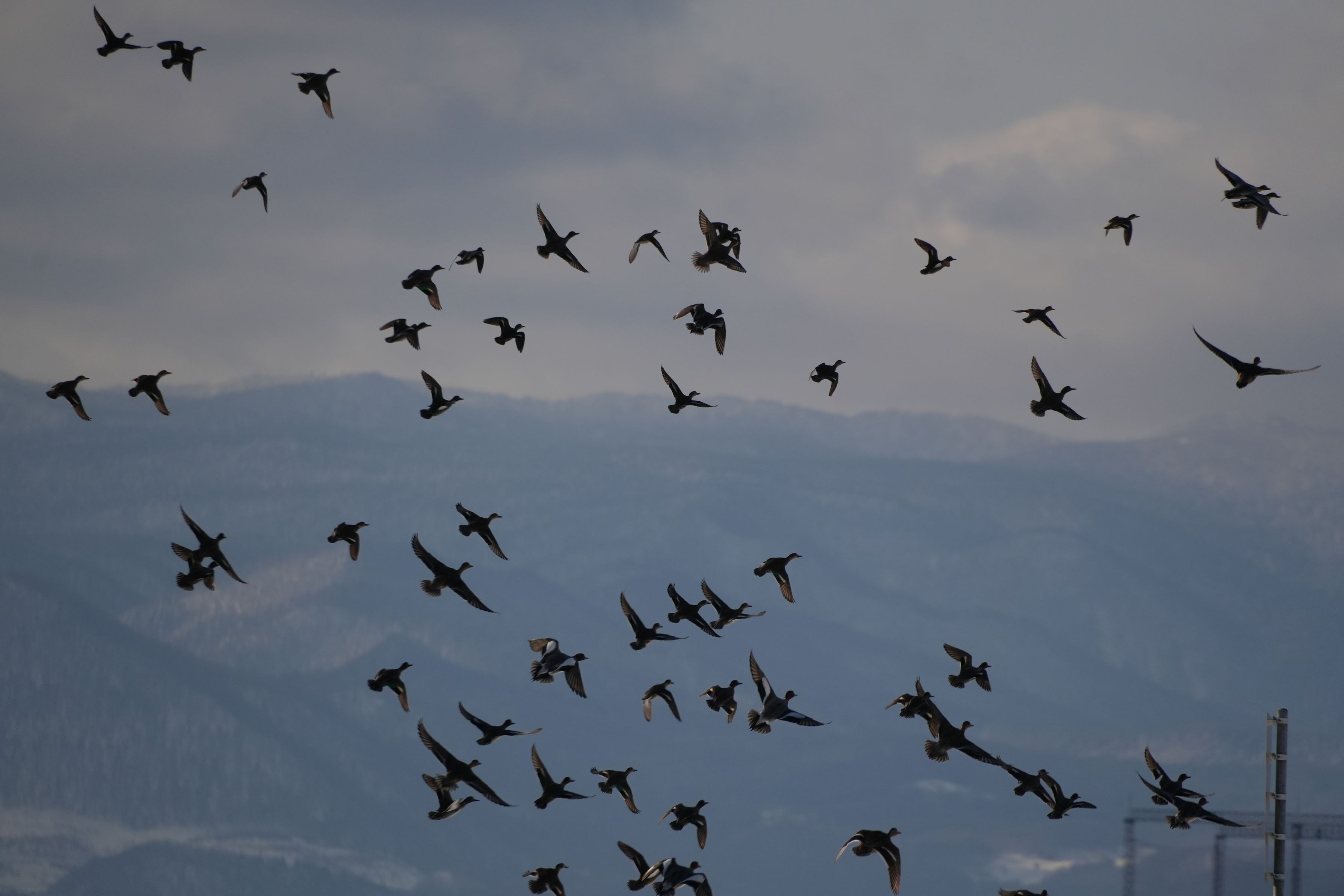 飛ばしちゃった。冬の河川敷なめてた。 コガモ、ヒドリガモ、ヨシガモ
