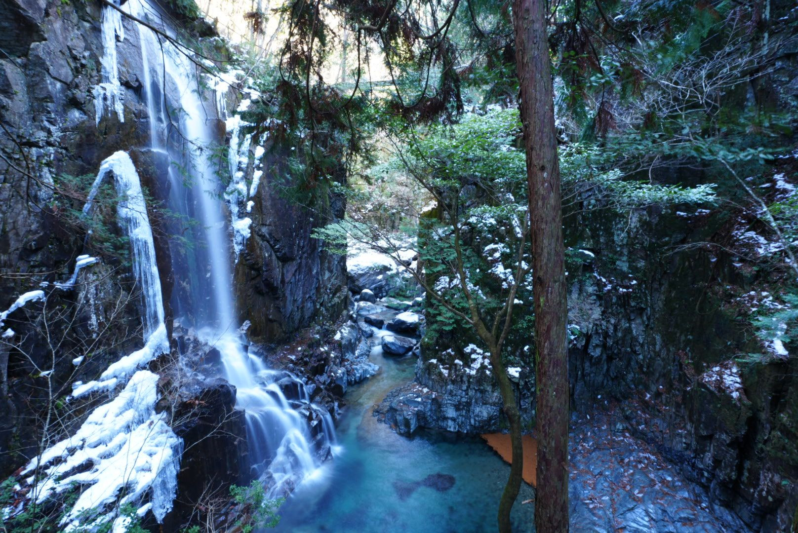 岐阜県の付知峡にある滝です 滝までの歩道が凍結していて大変でした