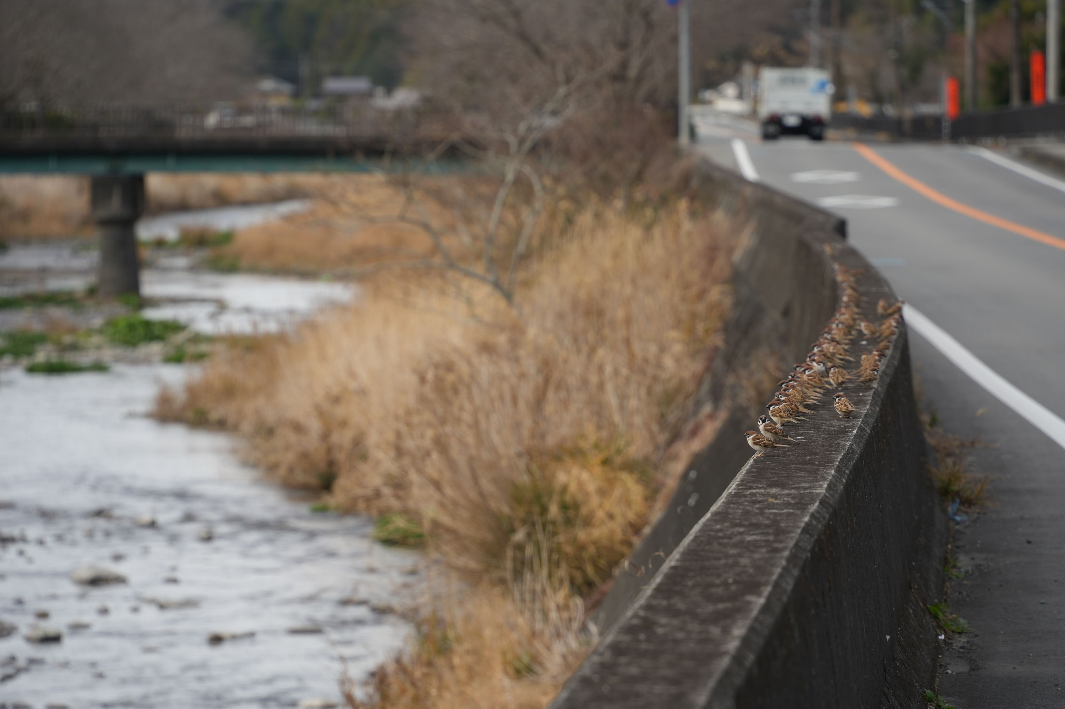 28~200㎜の200㎜側でも不足します。撮影高さを変更したけど、逃げていかれた。 鳥見様子見で出かけましたが結果は無し。スズメは減っているそうなのでそれはそれで大事にしないとなりません。雪降るかな~、とか思ってる伊豆田舎。