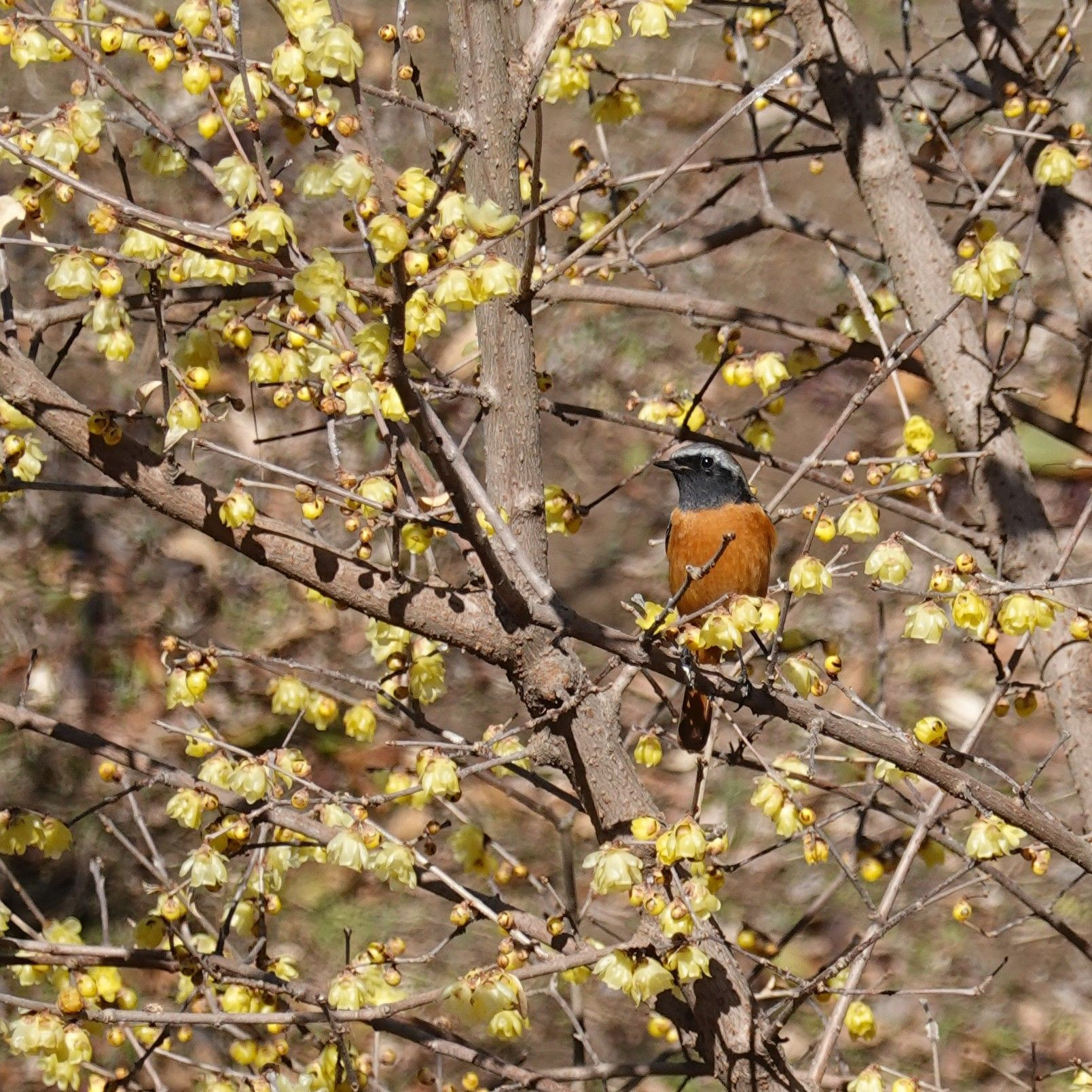春の香りを探しに公園散策へ 蝋梅の甘い香りが漂ってました