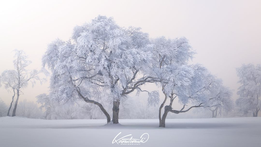 朝焼けを期待していたのですが霧に覆われてしまいました。 時折わずかに明るくなったタイミングで撮影しました。
