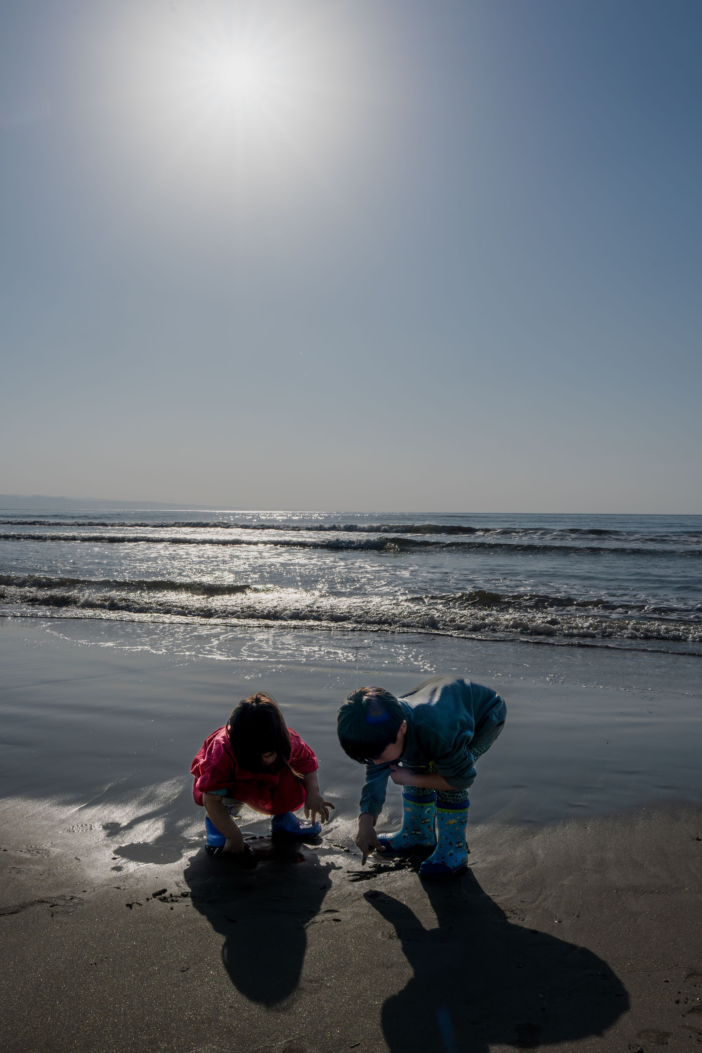 波音のそばで、妹は兄の手先を見つめる。 教える声は小さく、砂浜に静かな集中が流れていた。 SONYα7Ⅳ