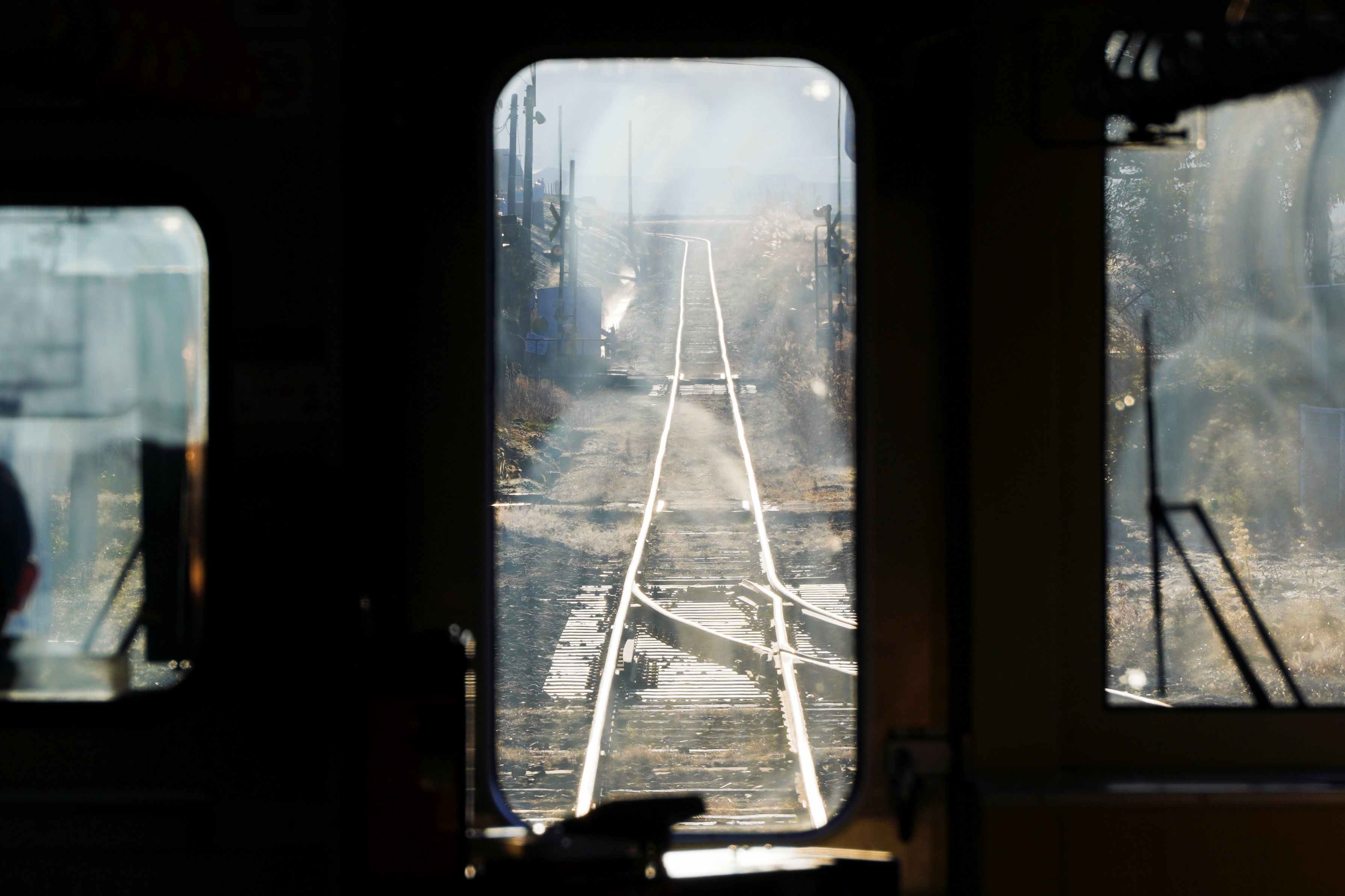 南阿蘇鉄道 駅停車の時、朝日での輝きが素敵でした。