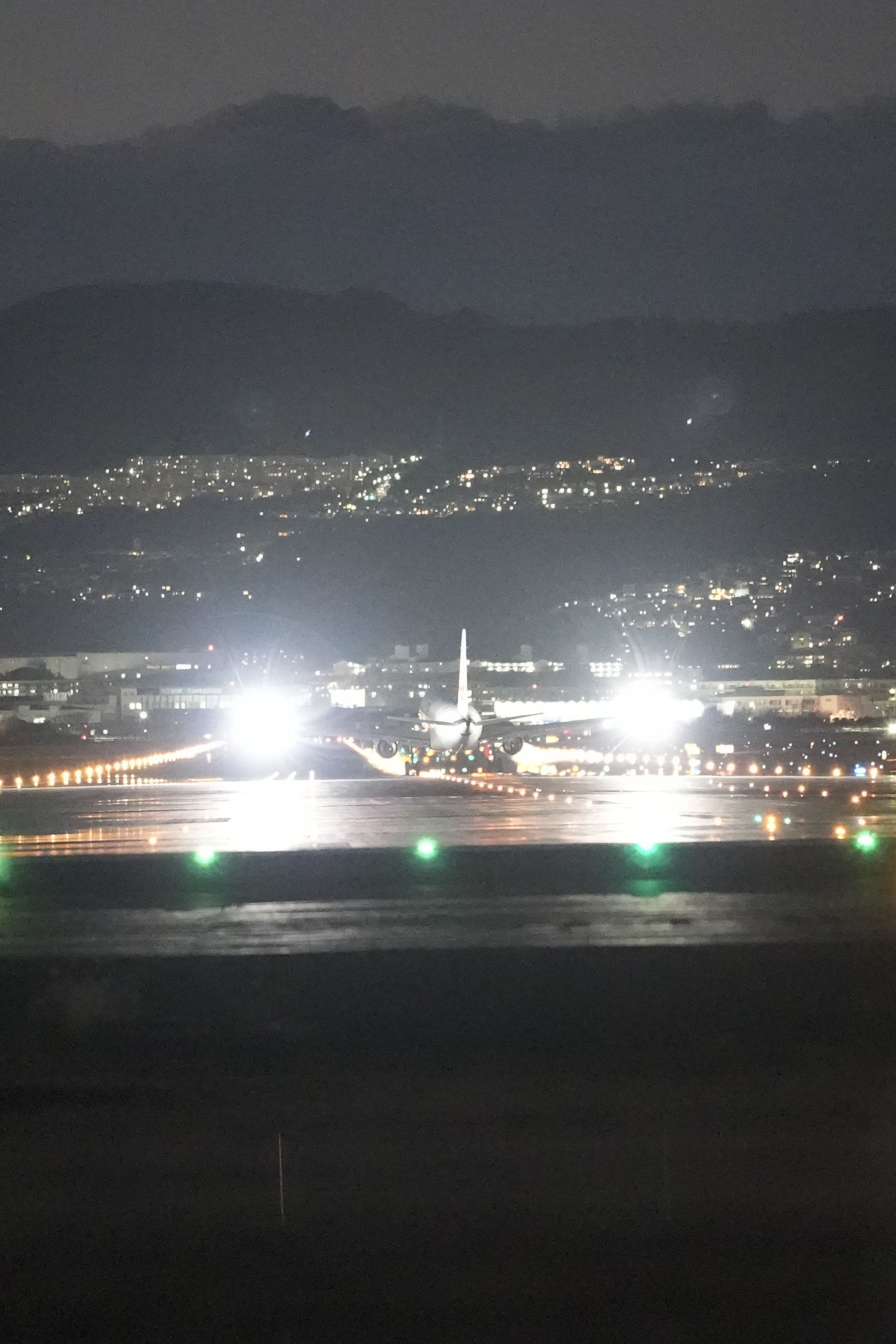 航行灯に照らされる飛行機