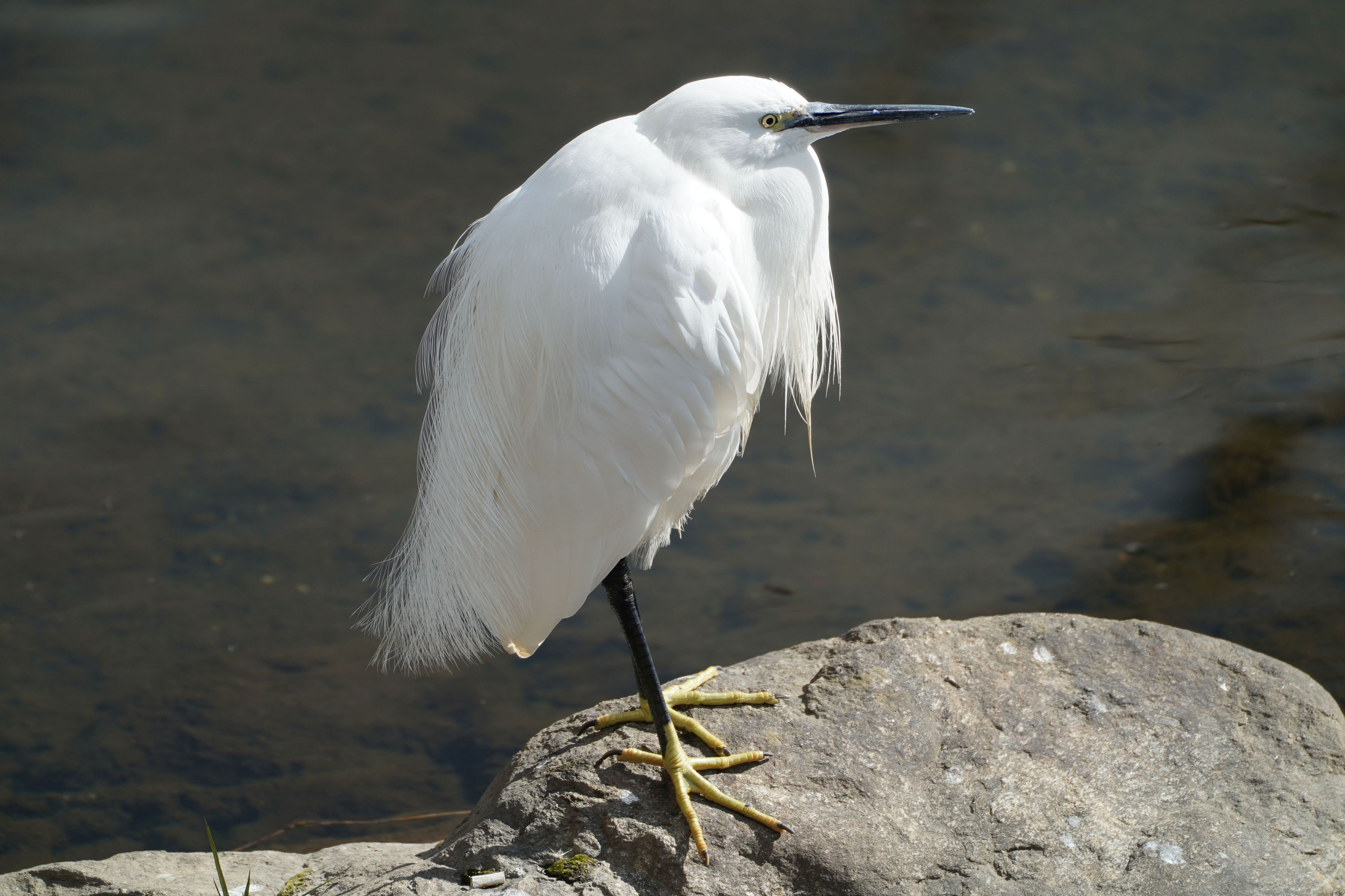 川中の岩でちょっと休憩、白い羽がきれいでした。