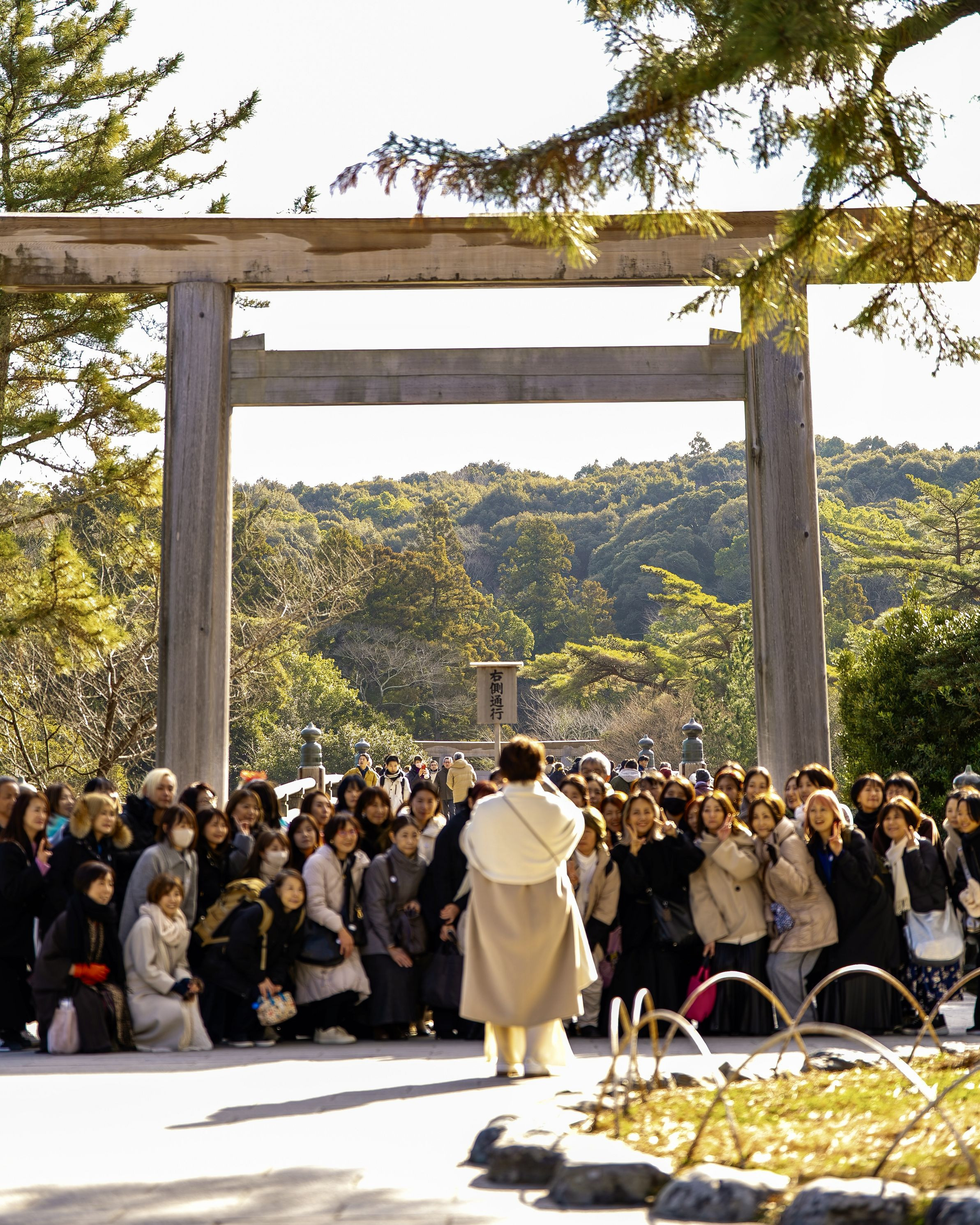 伊勢神宮内宮を訪れた際、鳥居前で記念写真を撮られていた団体の方々の後ろから微笑ましく見ていた光景が良かったので撮影させていただきました♪