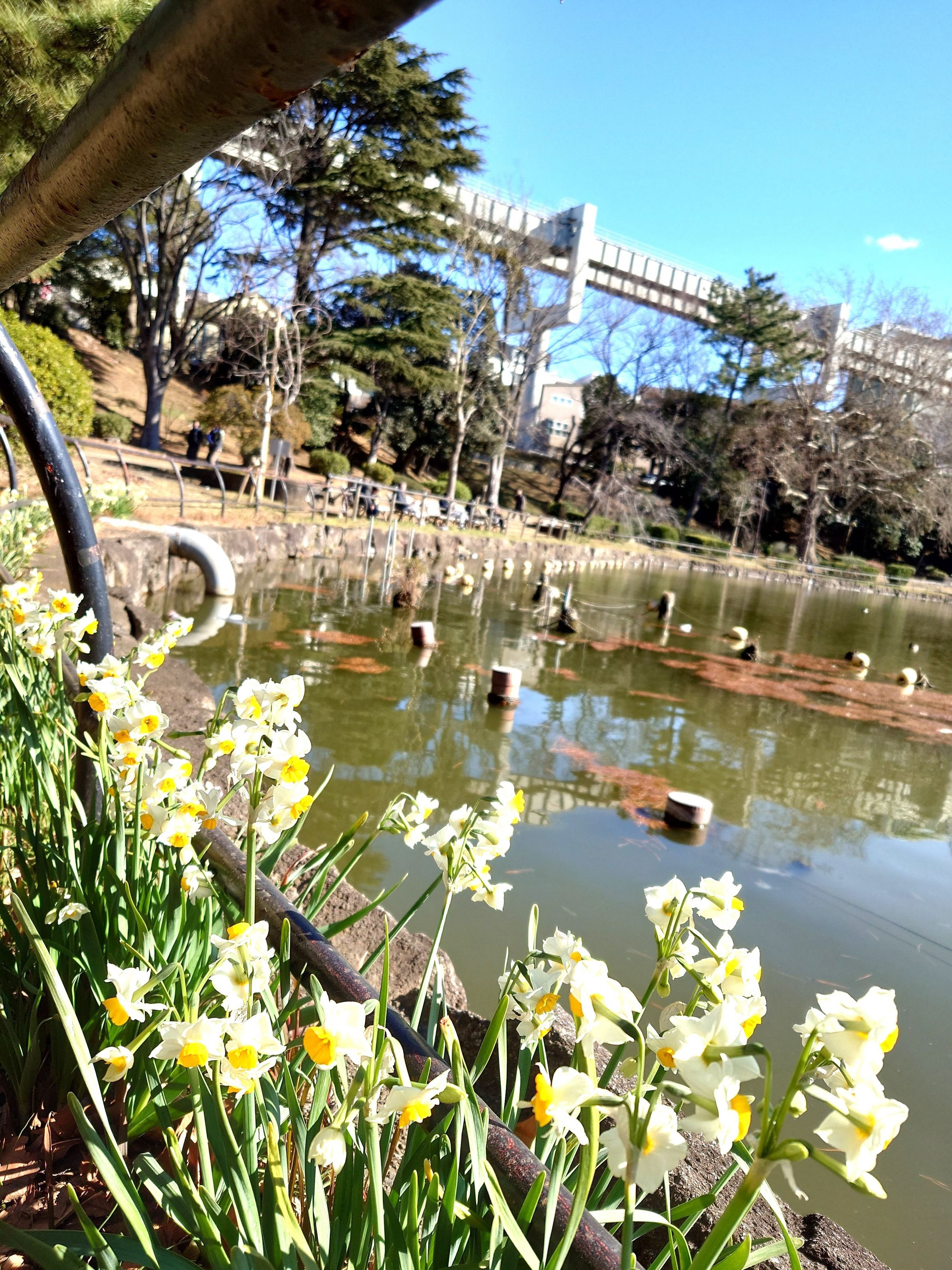 日当たりの良い公園の水仙と、千葉公園