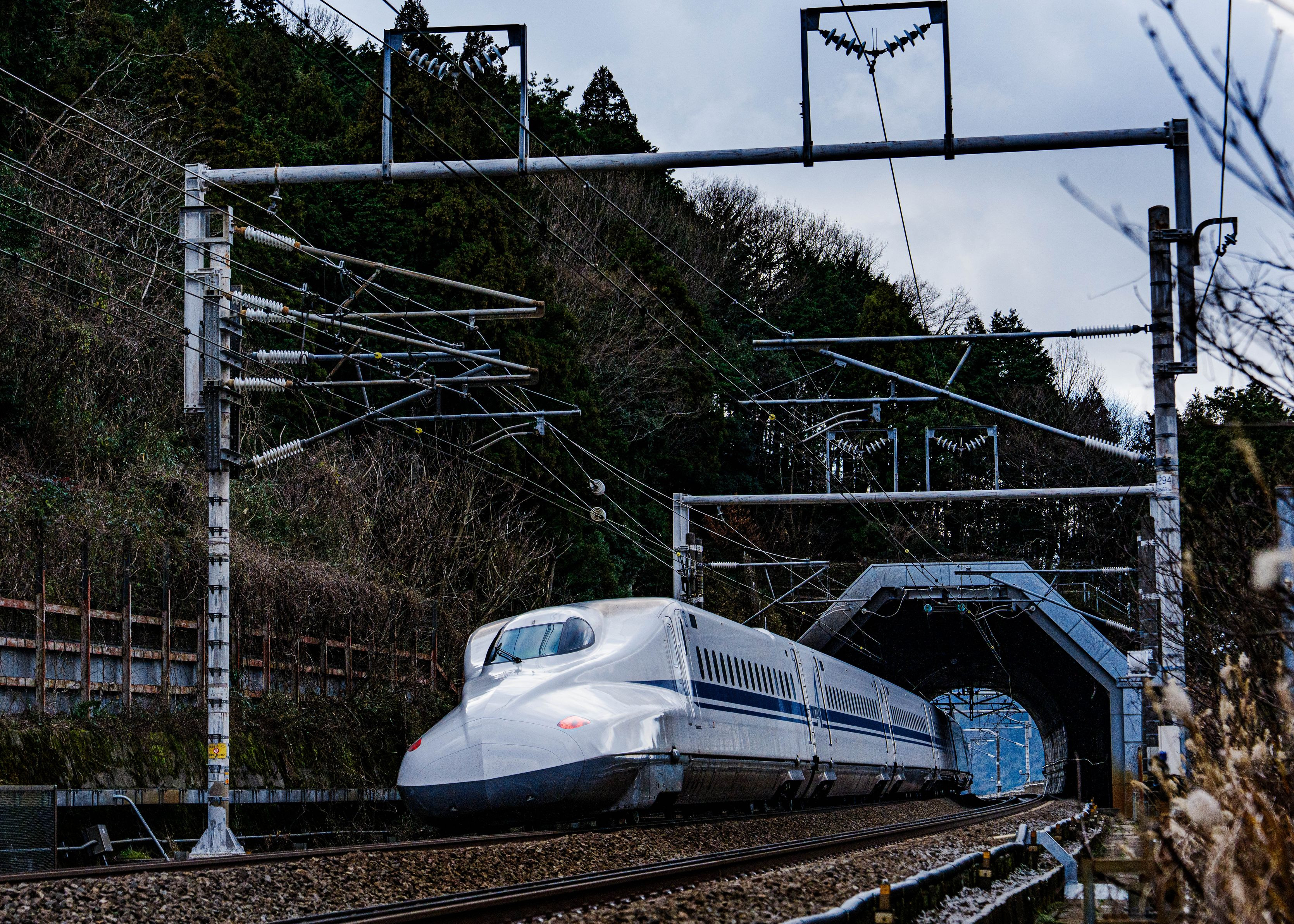 ★米原市長岡 小さなトンネル★ とても小さなトンネルですが、その脇のフェンス越しに撮影できる地を知り、立ち寄ってみました。地震の影響で上り線がほとんど来ませんので、下り線の追っかけの画ですが、ものすごいスピードで駆け抜けていきました。