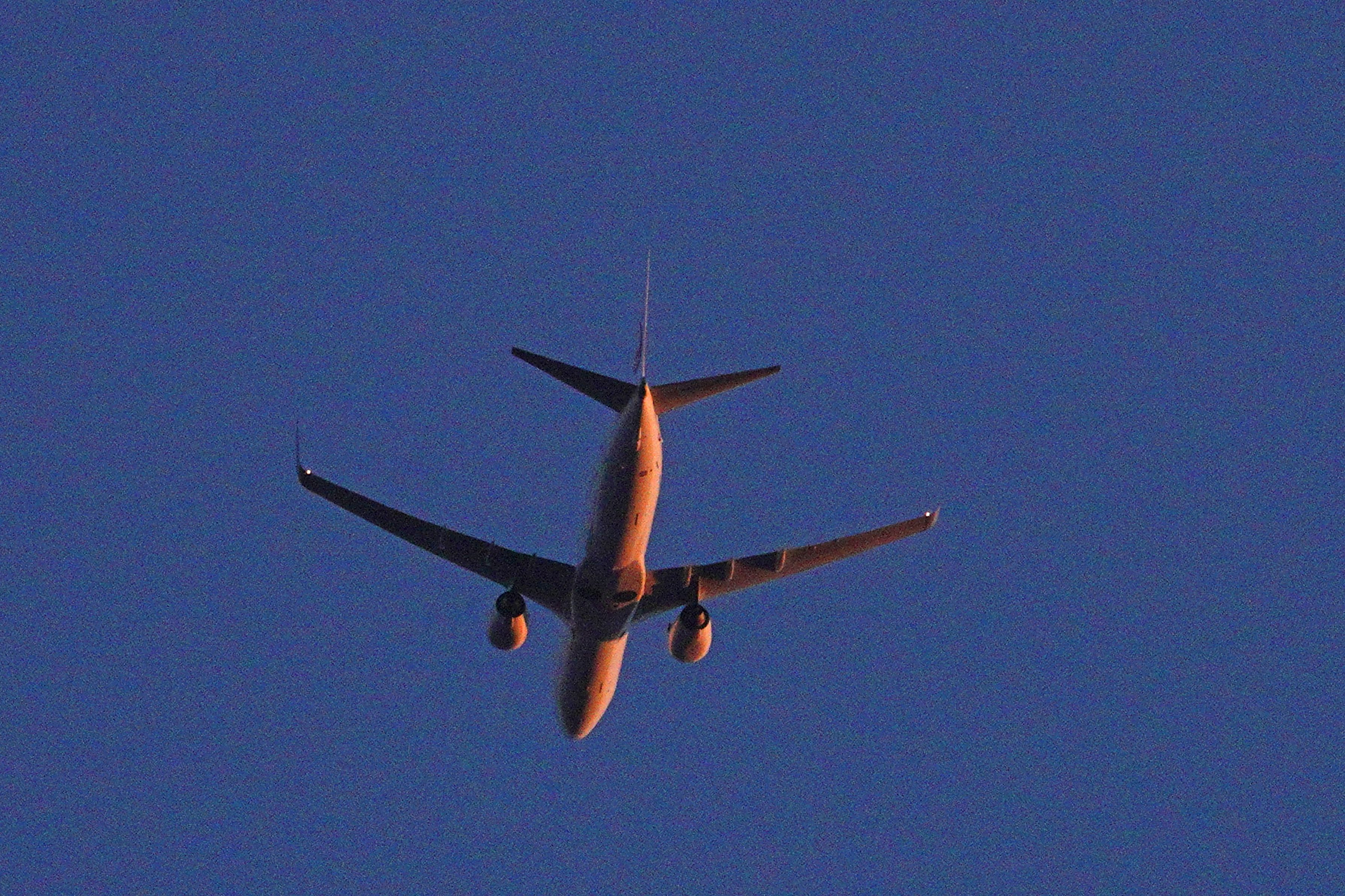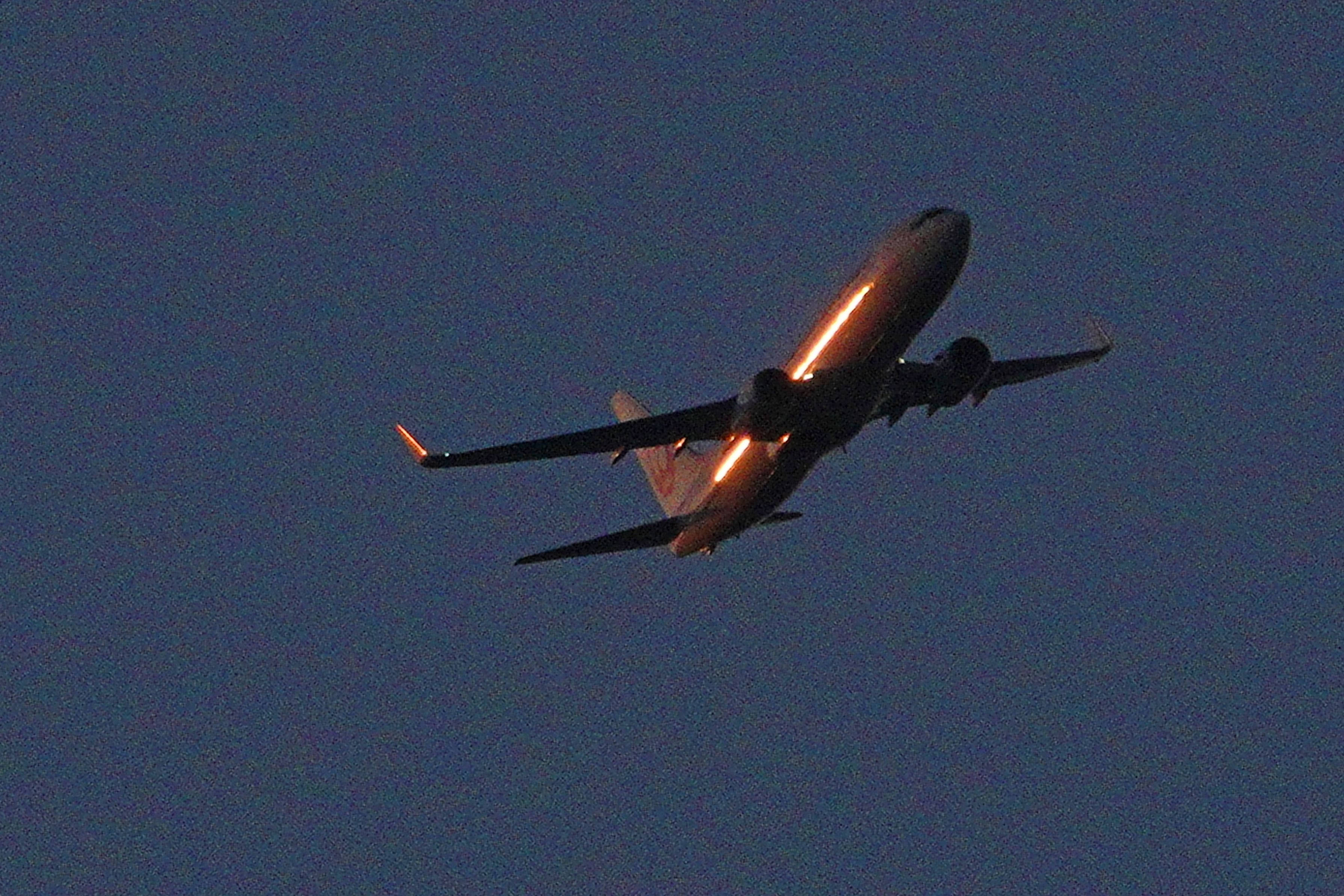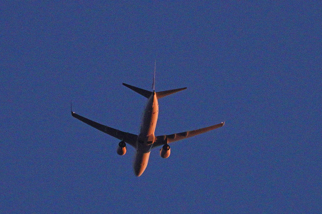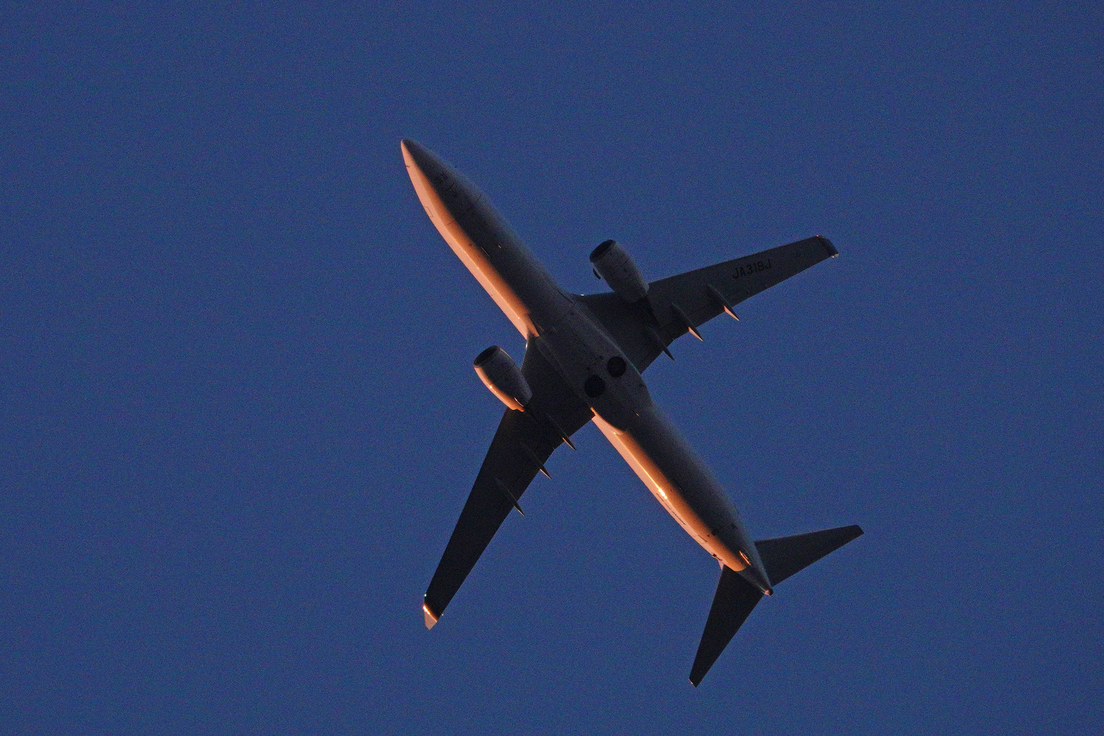 高松空港発の一番機・・・JALが朝日に輝きながら旋回して羽田へ。