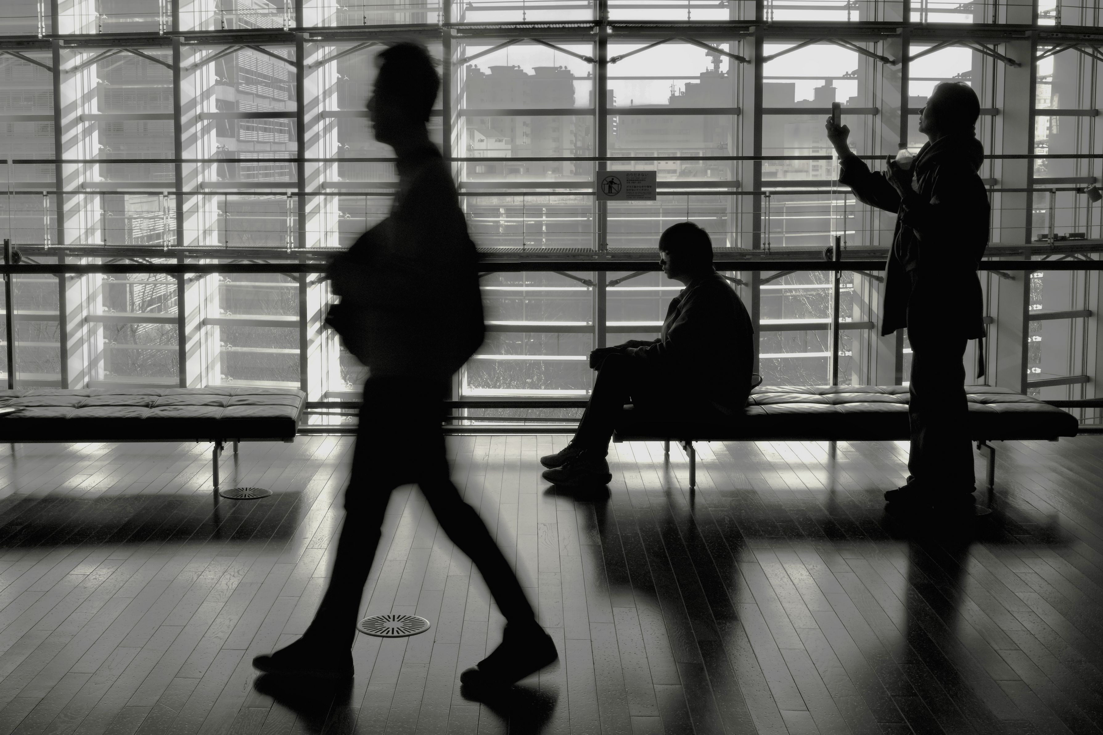 black and white clear and blurred slowshutter backlit walking silhouettes シルエット