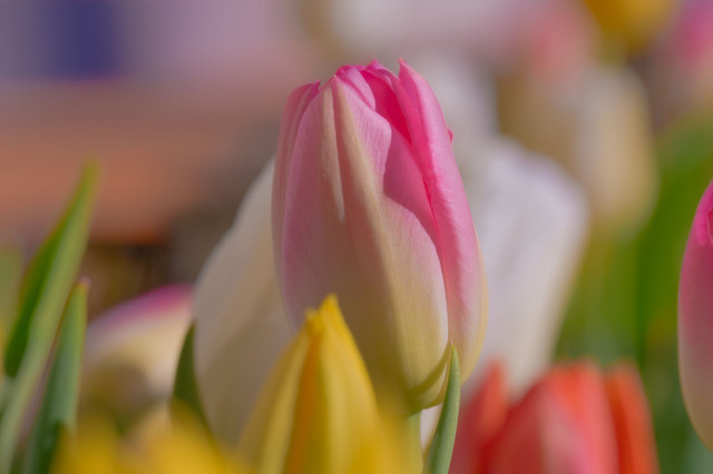 春に咲くチューリップと同じ品種でも、冬の光だと色がクリアに見えて花もゆっくり開くので形がきれいです。