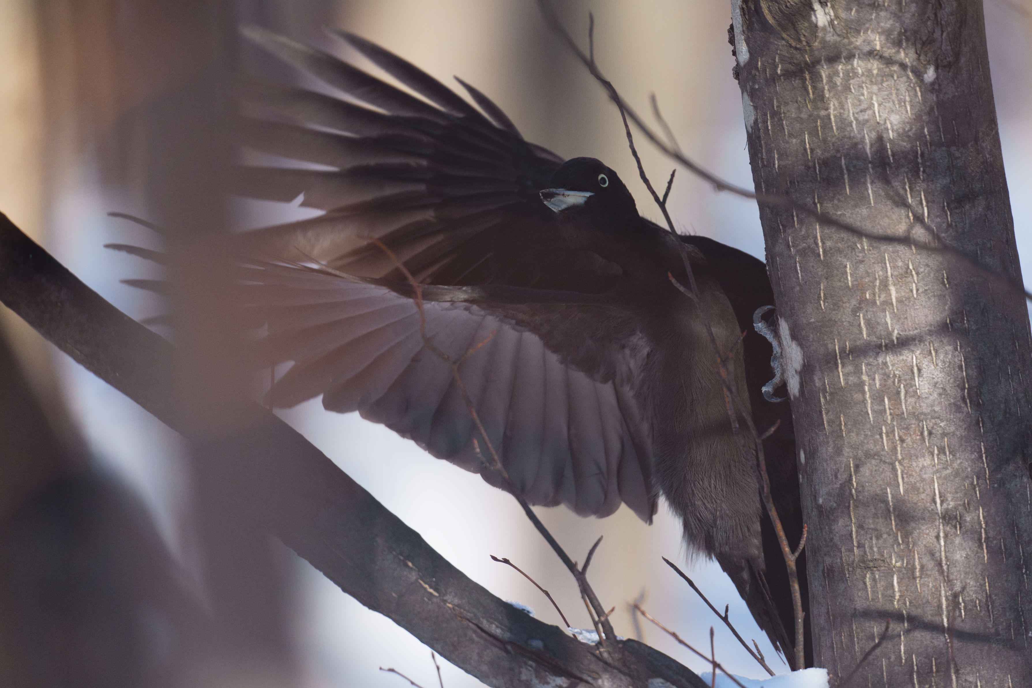 お食事を終えて飛び立つクマゲラさん