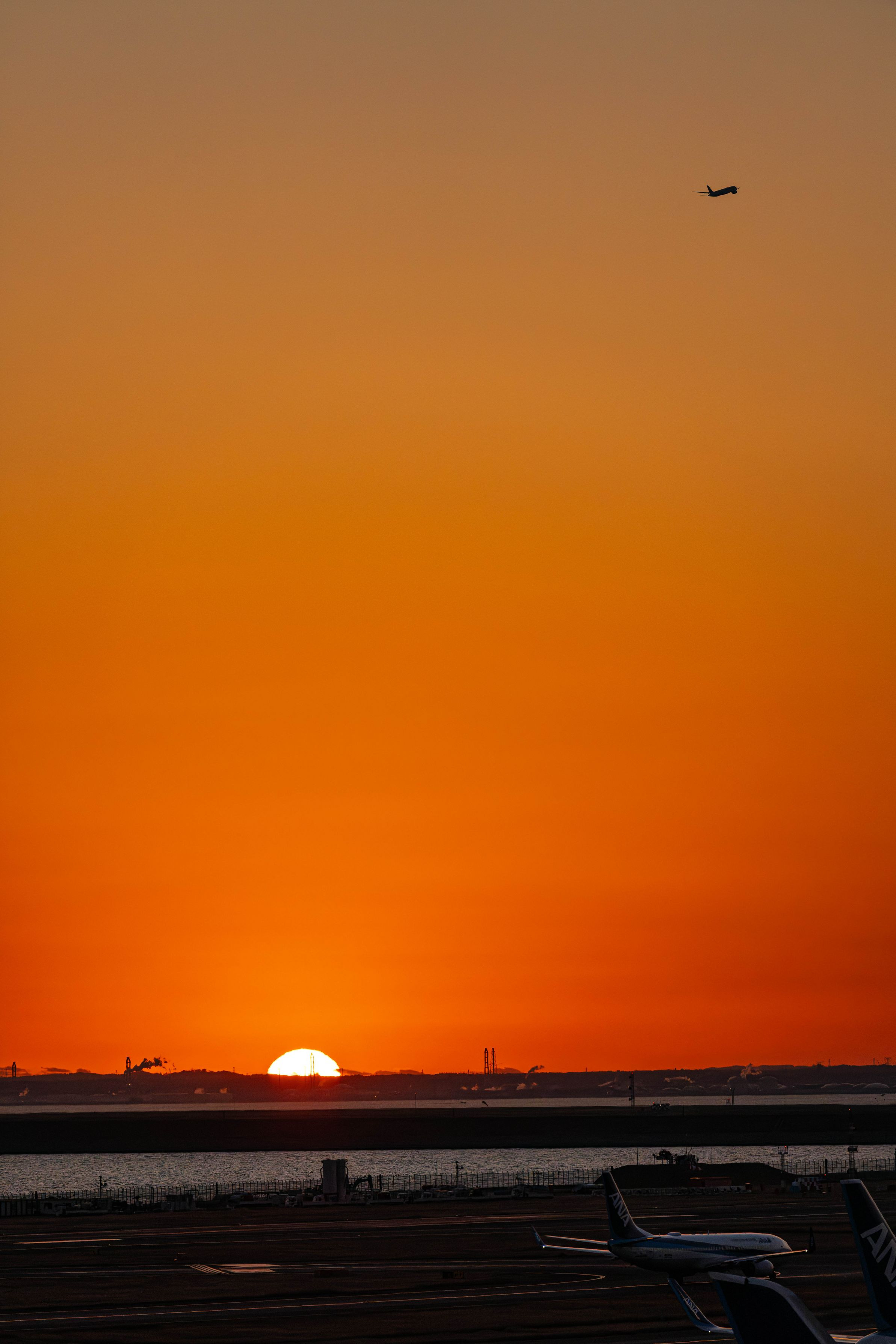 朝日と旅客機