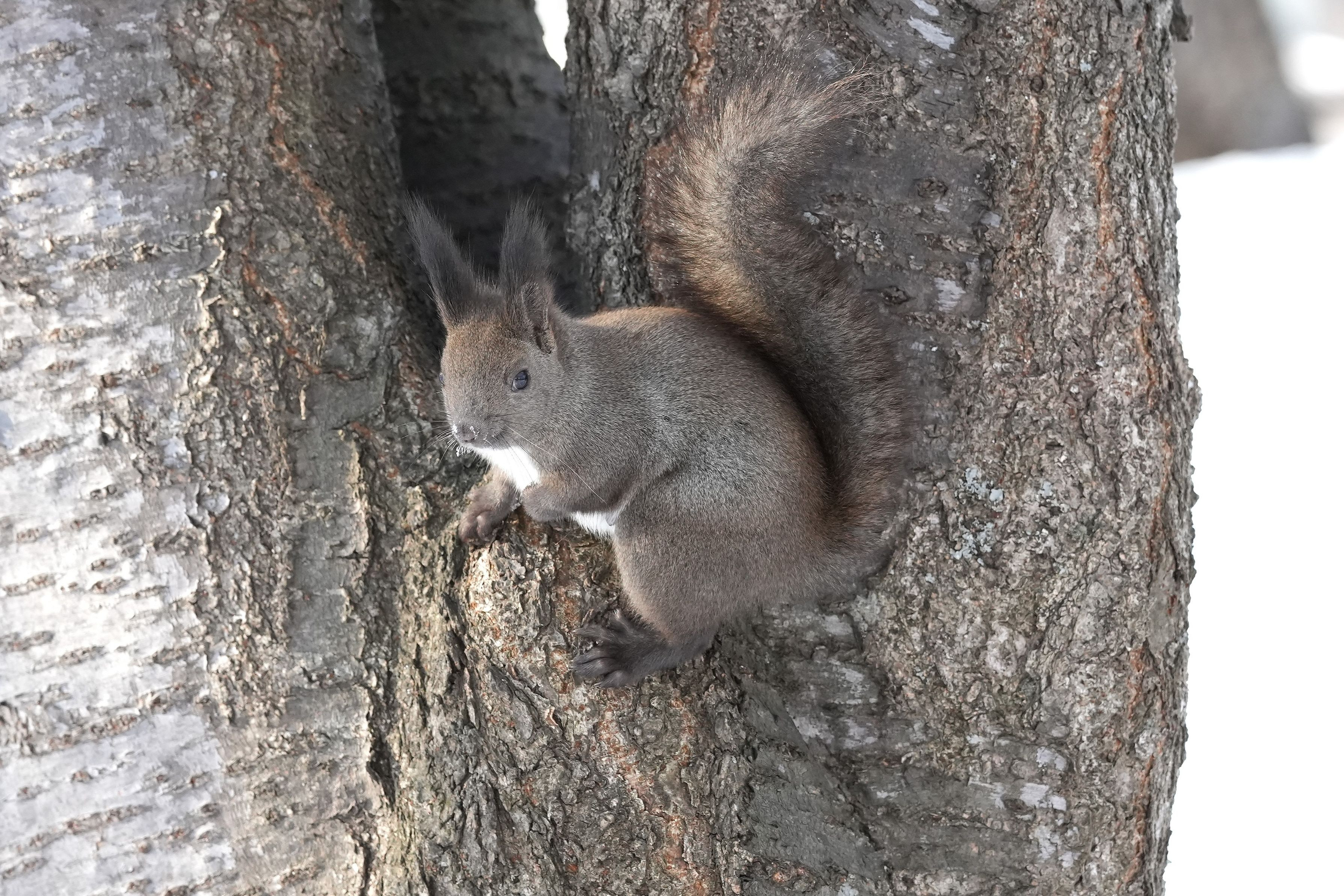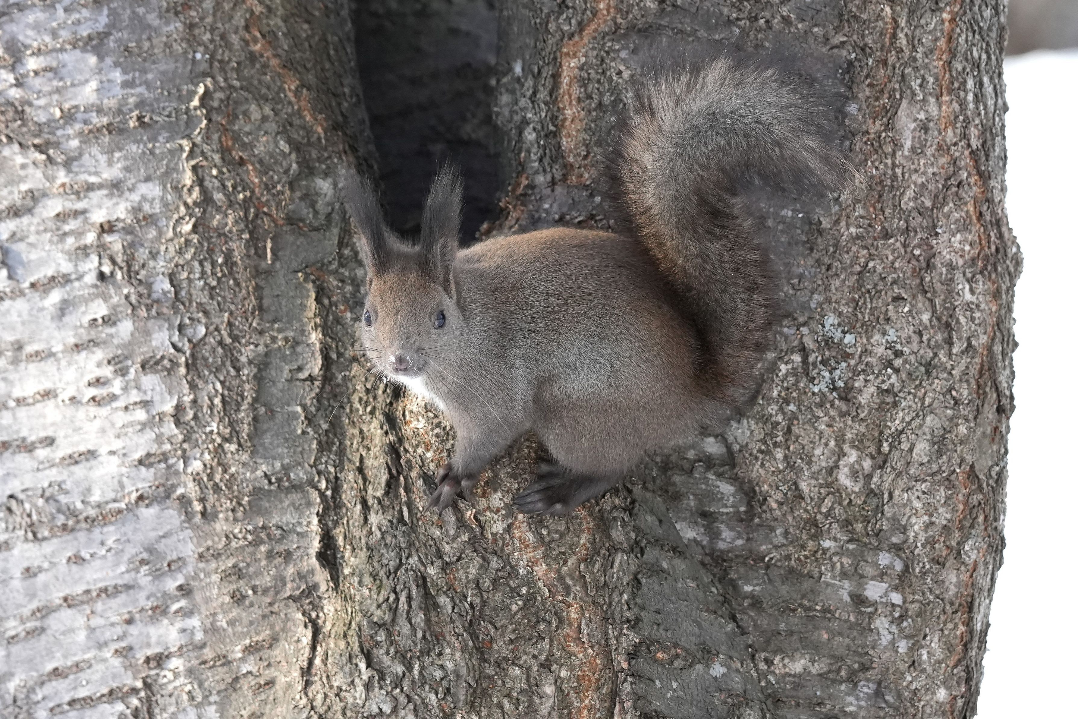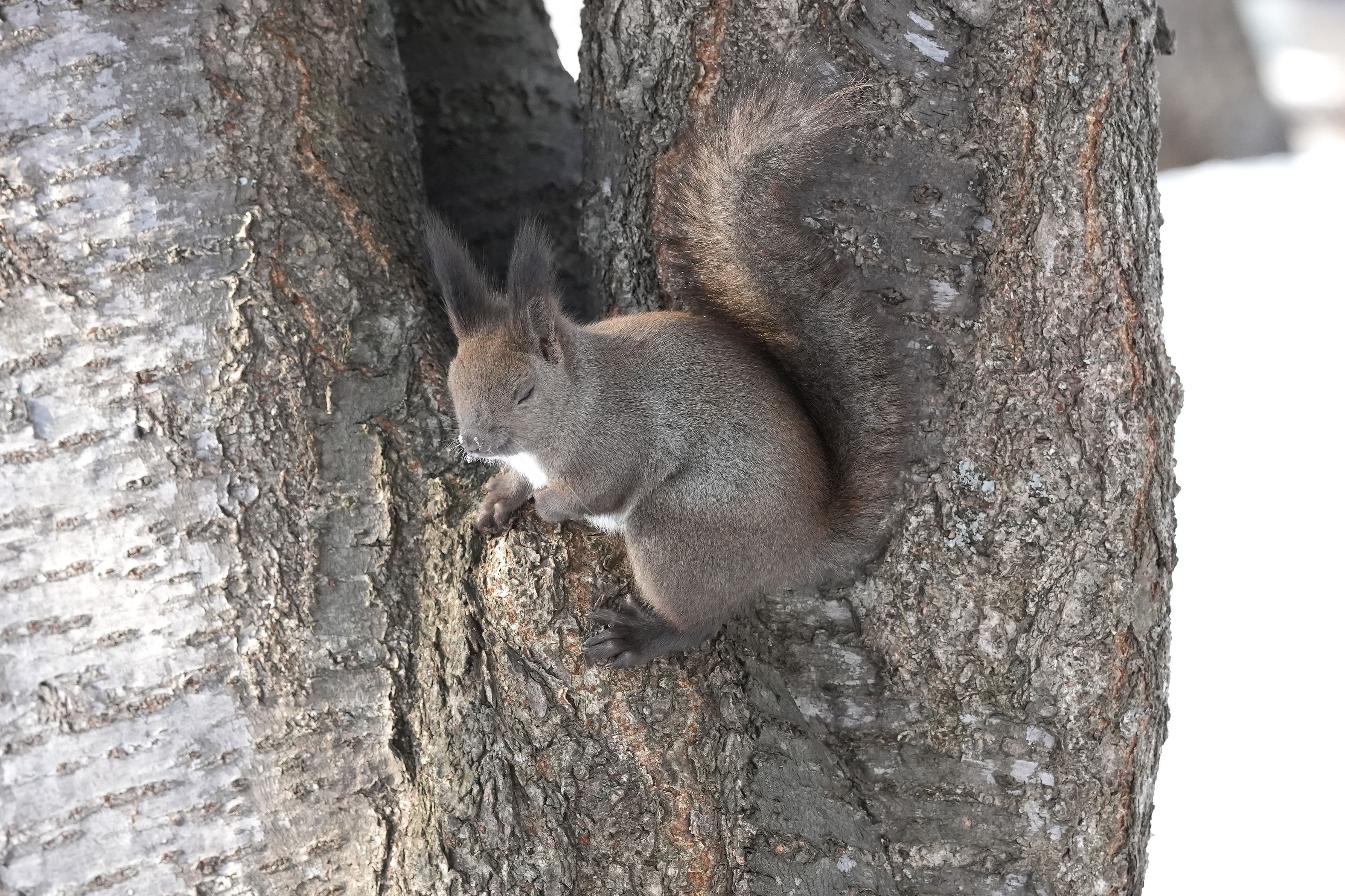 気嵐のあと、歩数稼ぎに公園散歩。エゾリスたちが寒さもなんのその、元気に走り回っていました。こっちに向かって走ってきて、足元を走り去るので、体を上がってこないかとドキドキします。まるでからかわれているような…。
