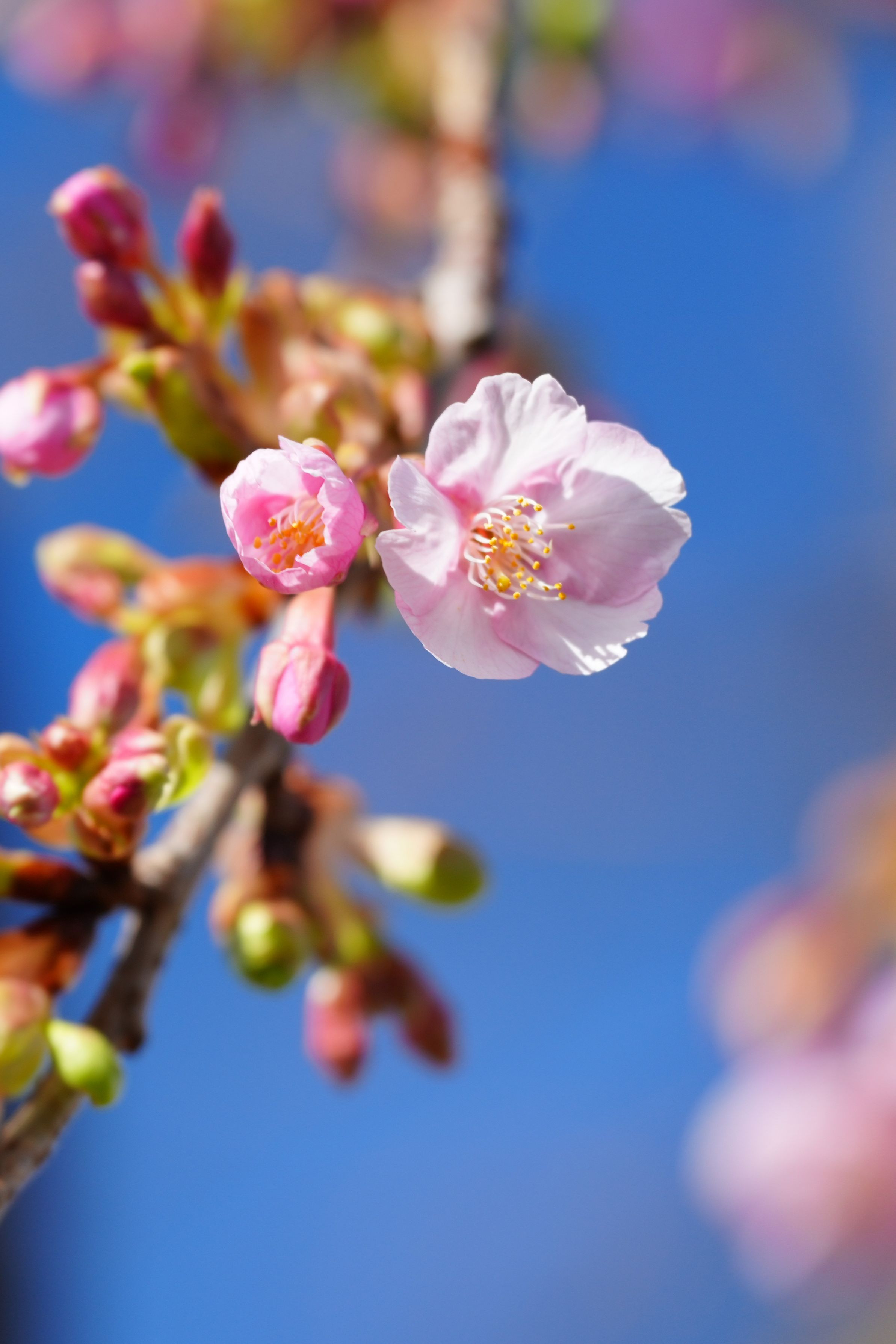 1月21日投稿の河津桜を2日後に撮影。 晴天で、春の先駆けを感じさせます。