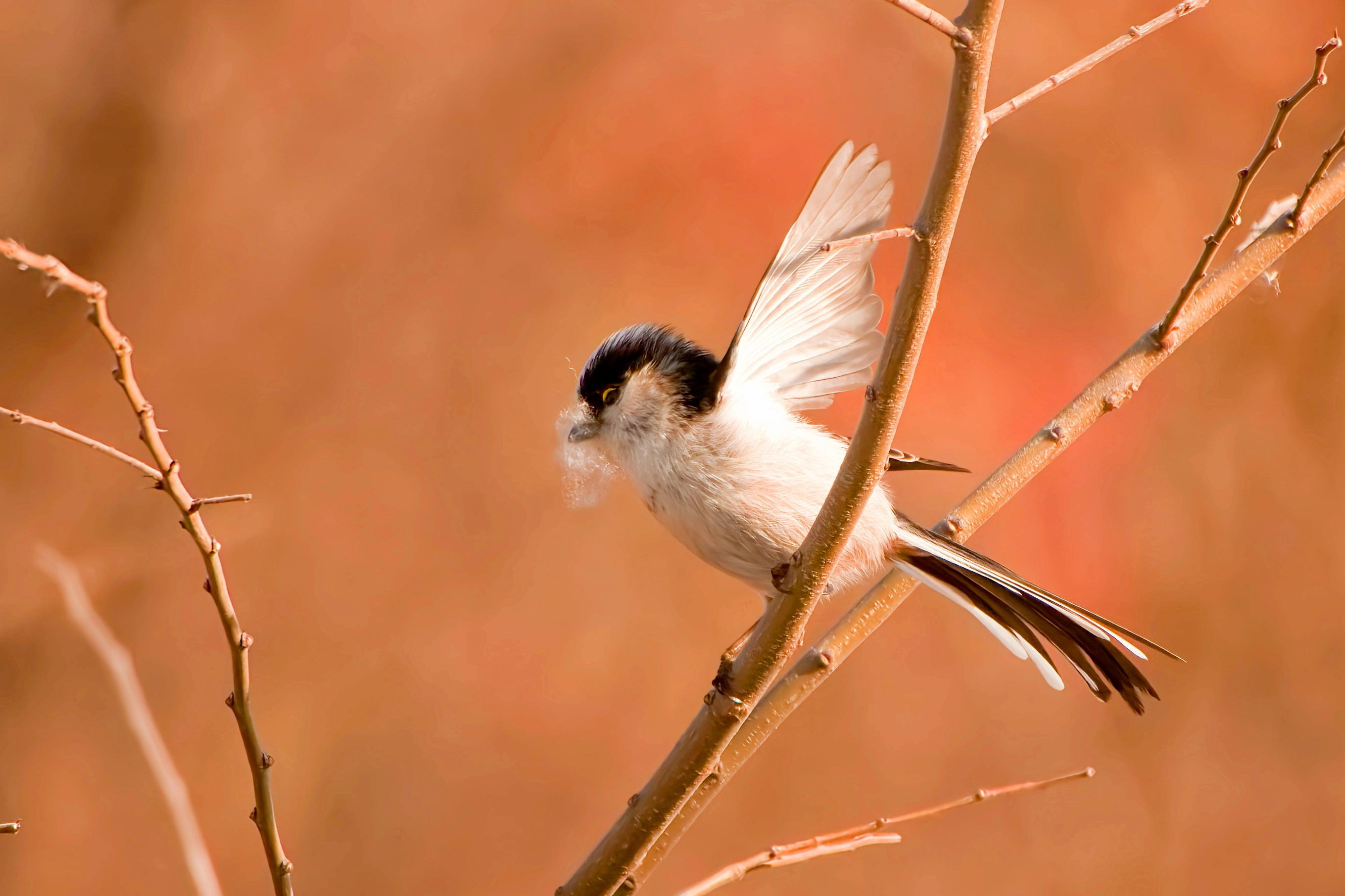 巣材集め中の#エナガ#忙しそうですが、目的物があるのでいつもより一か所に居てくれます。 順調に巣作りが進んでるといいなぁ(^^)