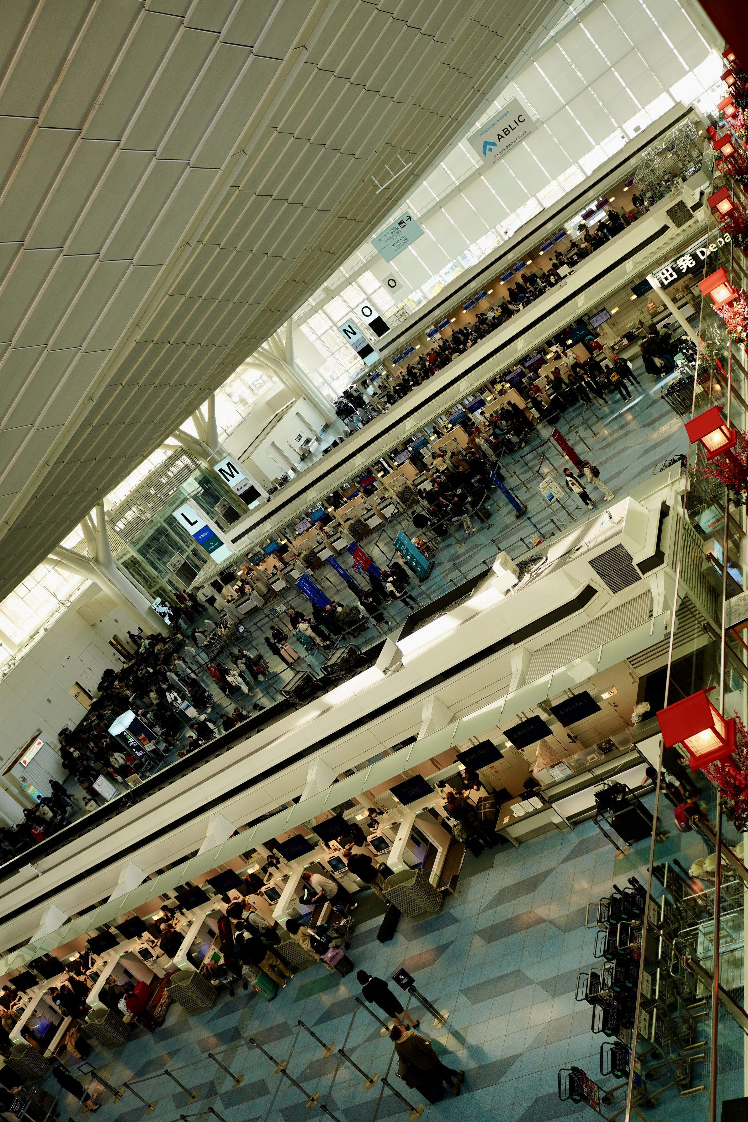 国際線のカウンターでは大きな荷物と共に手続きが進んでいました