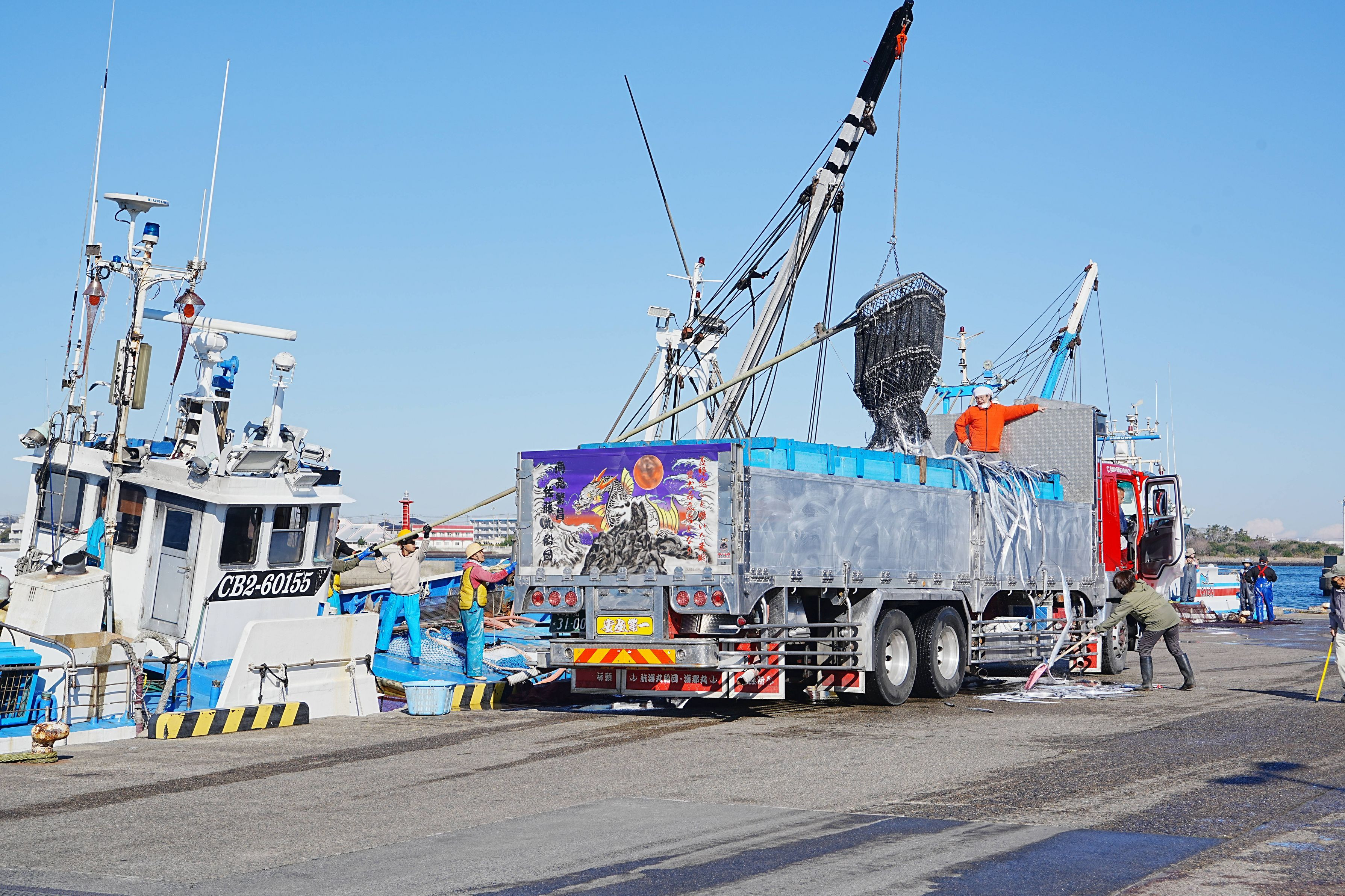 漁船とカモメ