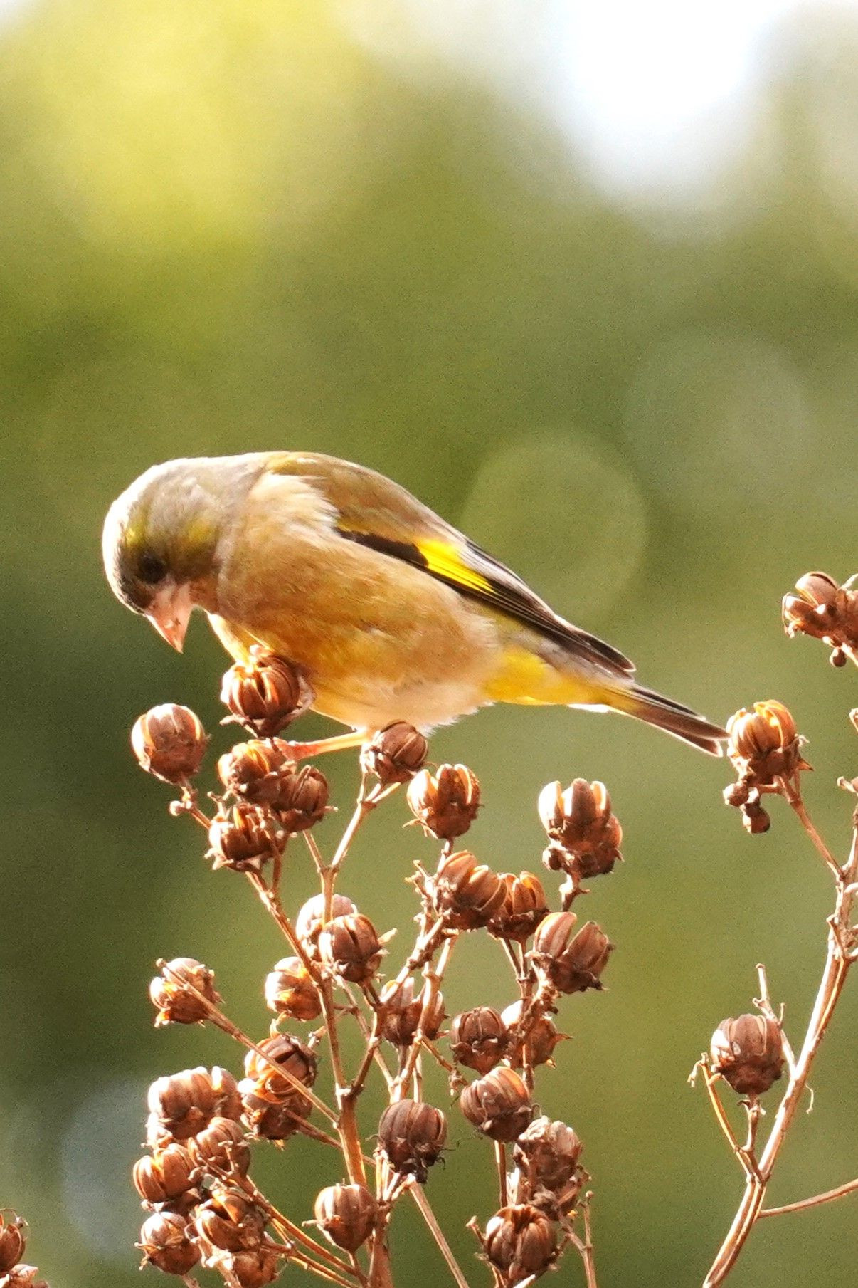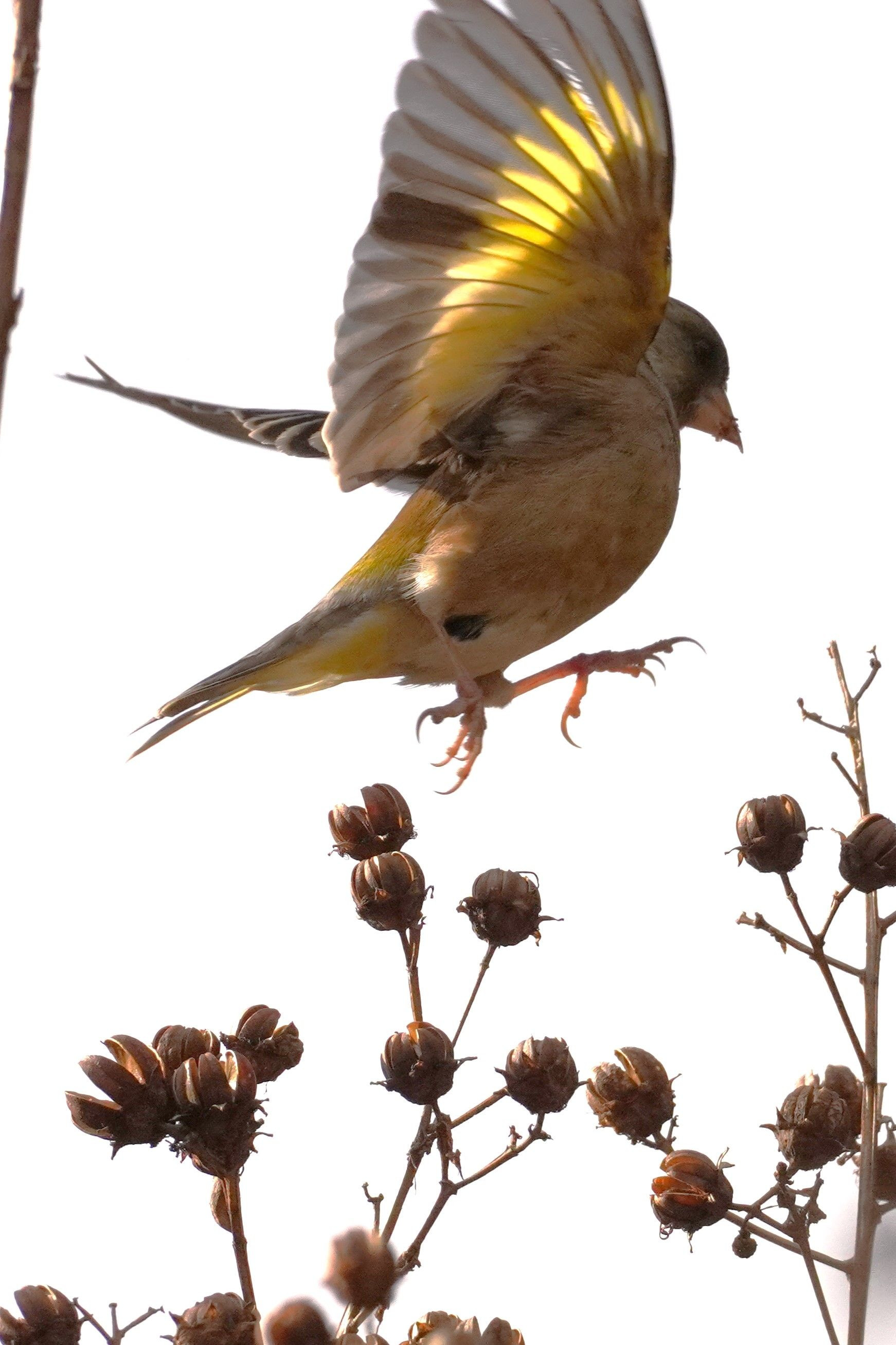 冬は、実がたくさんあってうれしいなって思っているようなカワラヒワさんです。