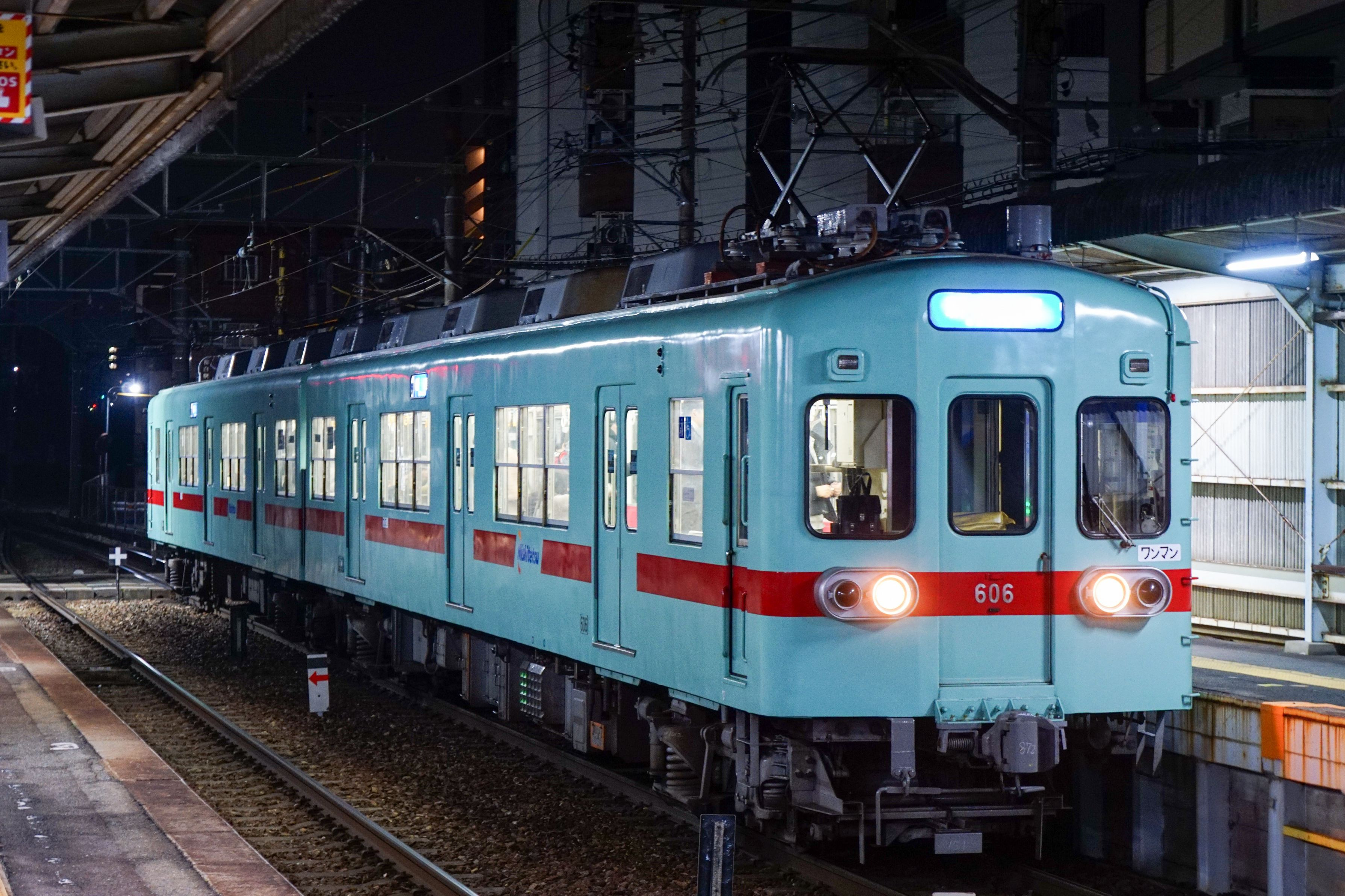 西日本鉄道の600形のアイスグリーン塗装を撮影