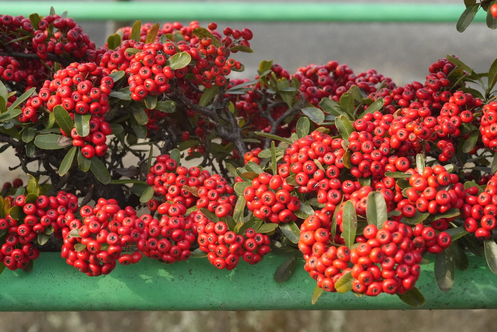 トキワサンザシはピラサンカとも呼ばれ植物です。実が鮮やかな赤い色をしています。 マクロ60mm F8でマニュアル撮影しました。