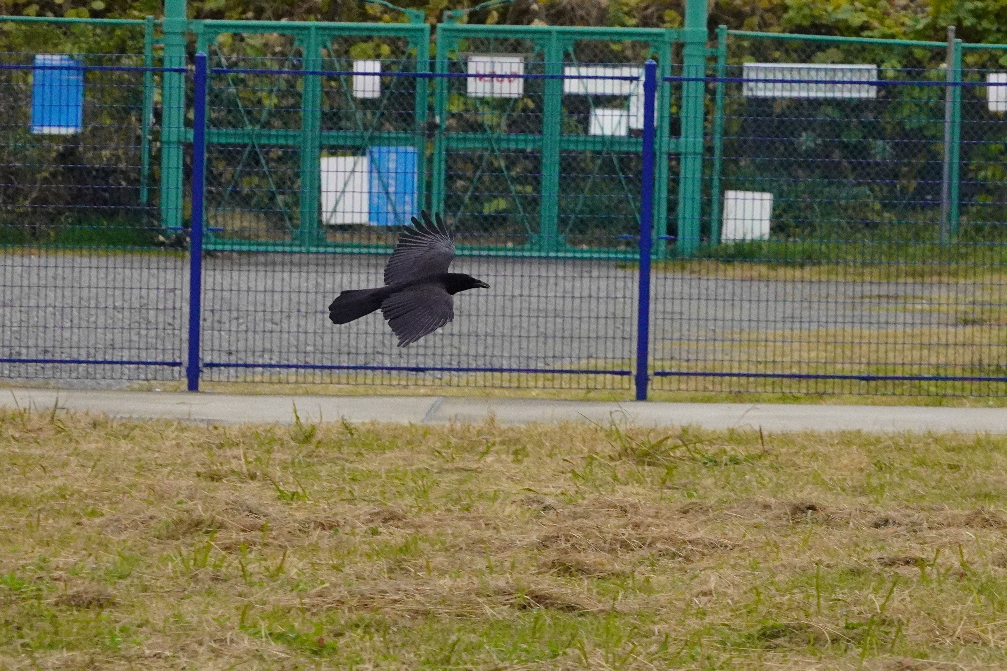 あまり人気のないカラスですが低空飛行を撮ってみました。