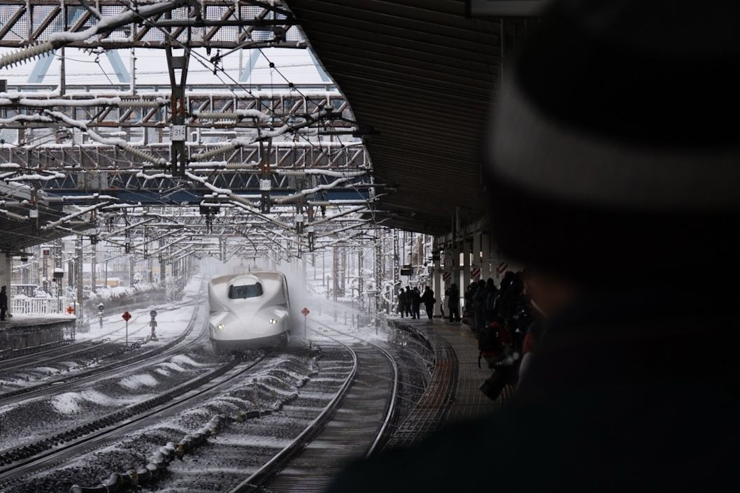 雪が降ればここへ 撮り鉄ではないけど新幹線は大好きな私 雪✖︎スプリンクラー✖︎新幹線 最強です 突然立ち上がってカメラマン越しに